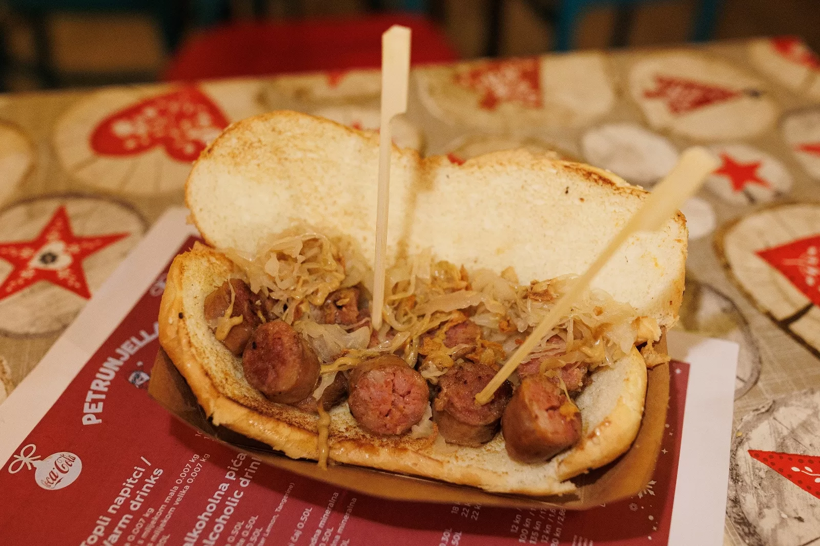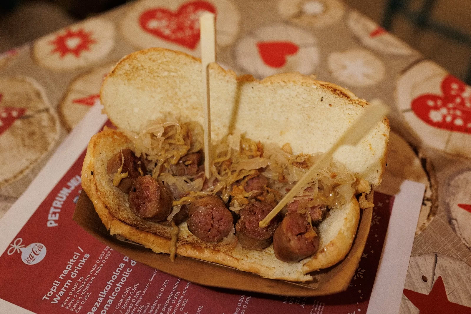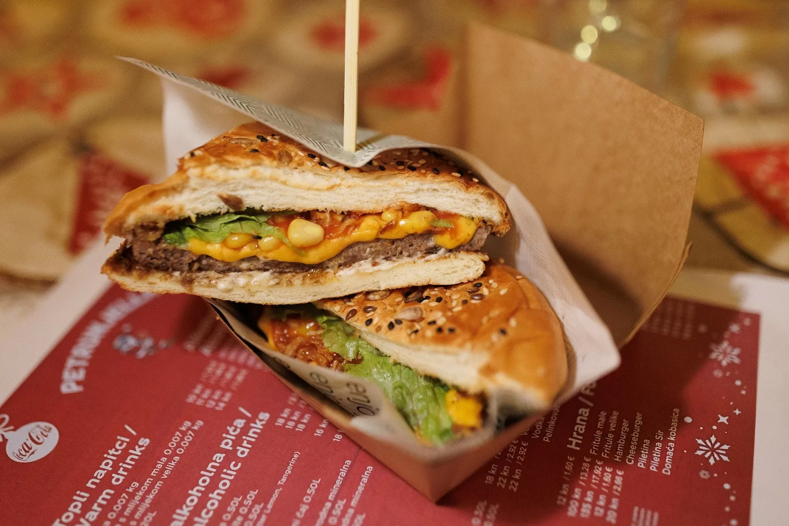 Luka Žilić i Matej Segarić, uz angažman prijatelja Nikole Jadrijeva, pojednostavili su svoju ponudu na burgere s odležanom junetinom i kobasicama iz OPG-a Butić. S tim sočnim jelima na visokoj su razini ponude zadarskog adventskog sajma, ali konkuriraju i cijenama – ni jedno jelo s njihove karte nije skuplje od 40 kn. Burgere slažu s cheddar sirom, zrnima slatkog kukuruza, hrskavom preprženom kapulom i zelenom salatom, a domaću divenicu serviraju u sendviču s kiselim kupusom.