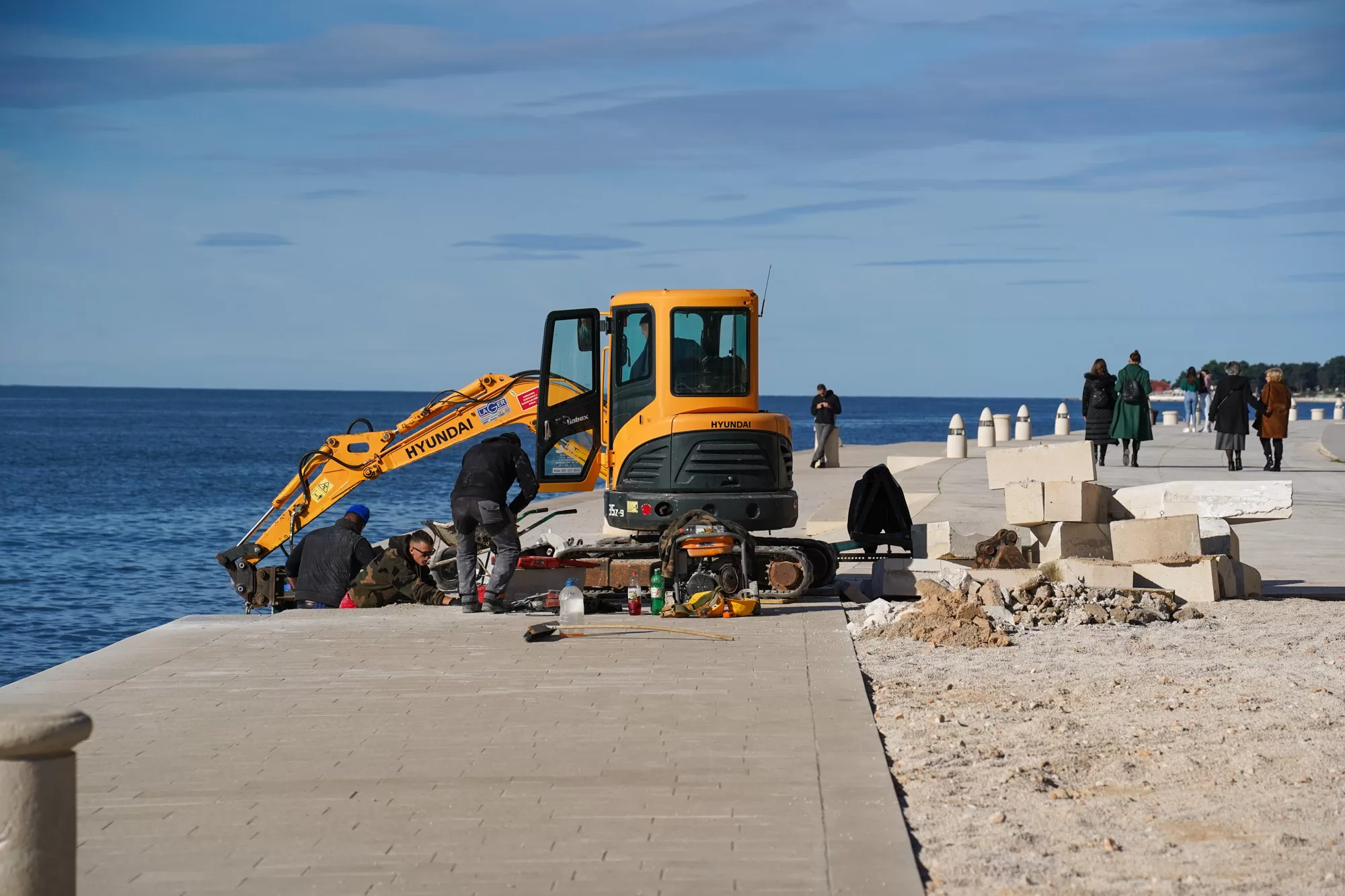 Na dijelu zadarske rive čije je uređenje već završilo, ovih dana ponovno se radi. Naime, razlog je taj što se ispravljaju greške izvođača radova napravljene prilikom uređenja tog dijela rive, a u sklopu rekonstrukcije i dogradnje.
