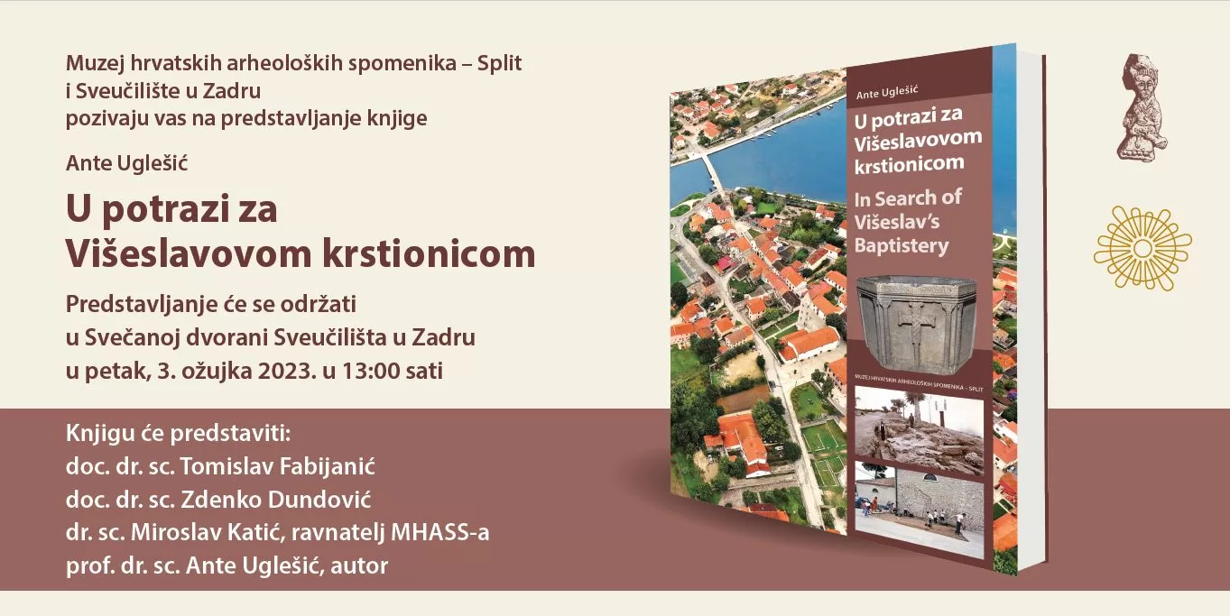 Muzej hrvatskih arheoloških spomenika – Split i Sveučilište u Zadru pozivaju na predstavljanje knjige „U potrazi za Višeslavovom krstionicom“ autora Ante Uglešića.