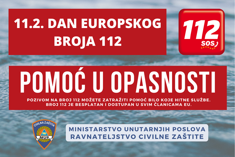 U subotu, 11. veljače obilježava se Dan jedinstvenog europskog broja za hitne službe 112. Besplatnim pozivom na broj 112 u svih 27 država članica Europske unije možete zatražiti pomoć hitnih službi (policije, vatrogasaca, hitne medicinske službe), a prema potrebi angažiraju se i drugi nadležni sudionici i operativne snage sustava civilne zaštite.