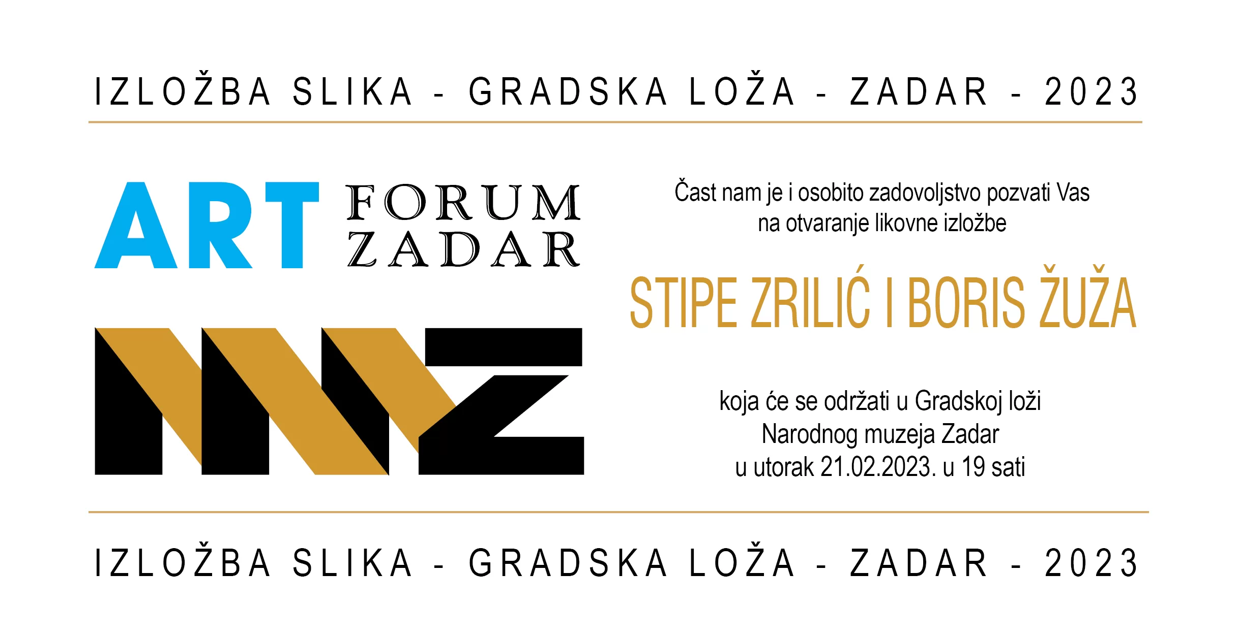 U utorak, 21. veljače 2023. godine s početkom u 19 sati bit će otvorenje likovne izložbe Stipe Zrilića i Borisa Žuže.