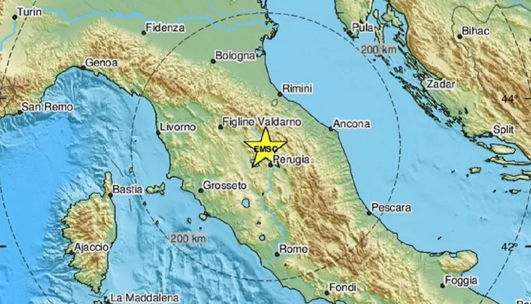 Sradišnju Italiju pogodio je potres jačine 4.6 po Richteru, javlja EMSC. Epicentar je zabilježen na dubini od 2 kilometra, 27 kilometara sjeverozapadno od talijanskoga grada Perugie. Potres se osim diljem središnje Italije osjetio i u Hrvatskoj.