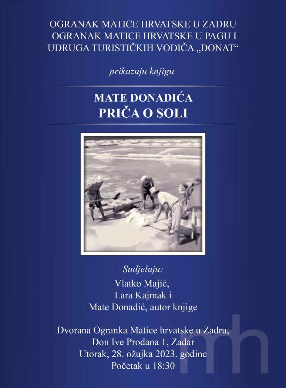 Ogranak Matice hrvatske u Zadru, Ogranak Matice hrvatske u Pagu i Udruga turističkih vodiča „Donat“, prikazuju knjigu Mate Donadića:“Priča o soli“.