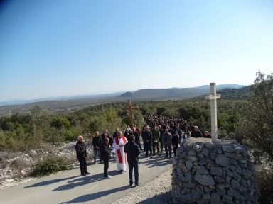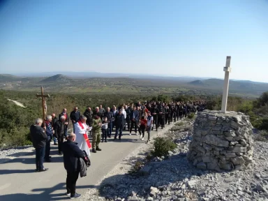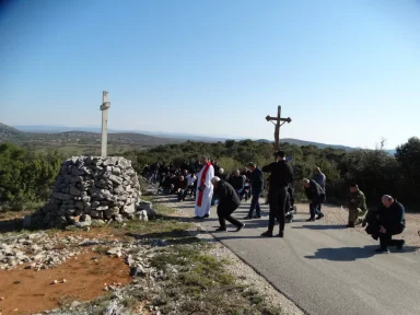 Križni put se održava kao vječni spomen nevinim žrtvama 2. svjetskog rata, koje se nalaze u jami na brdu Kamenjak. Kapela je podignuta nad jamom, čija je dubina 57 metara u kojoj se nalaze ostaci žrtava kostiju koji su tijekom i poslije 2.svjetskog rata na okrutan način pobijeni.