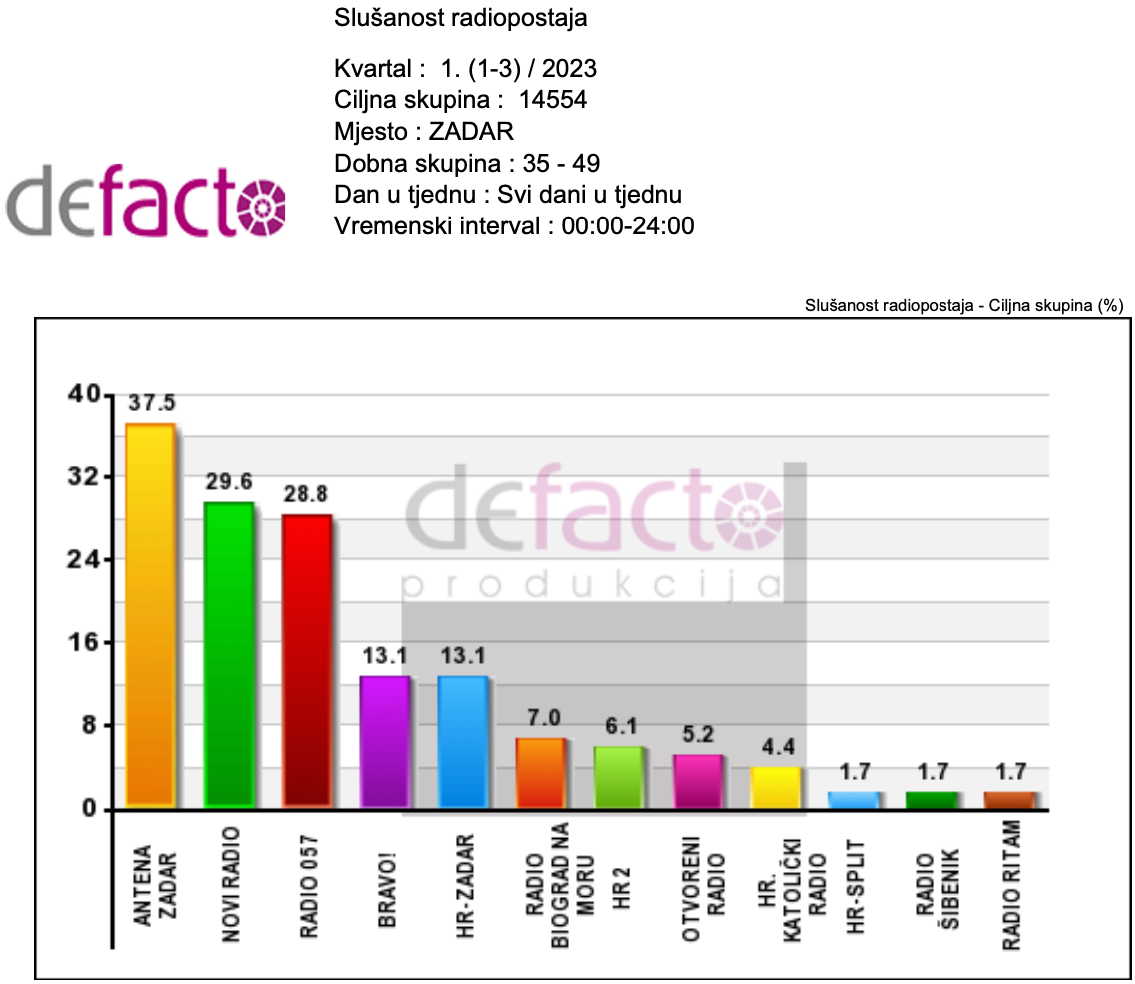 Pokazuju to istraživanja slušanosti Defacto produkcije, nezavisne istraživačke agencije s više od 30 godina iskustva na tržištu.