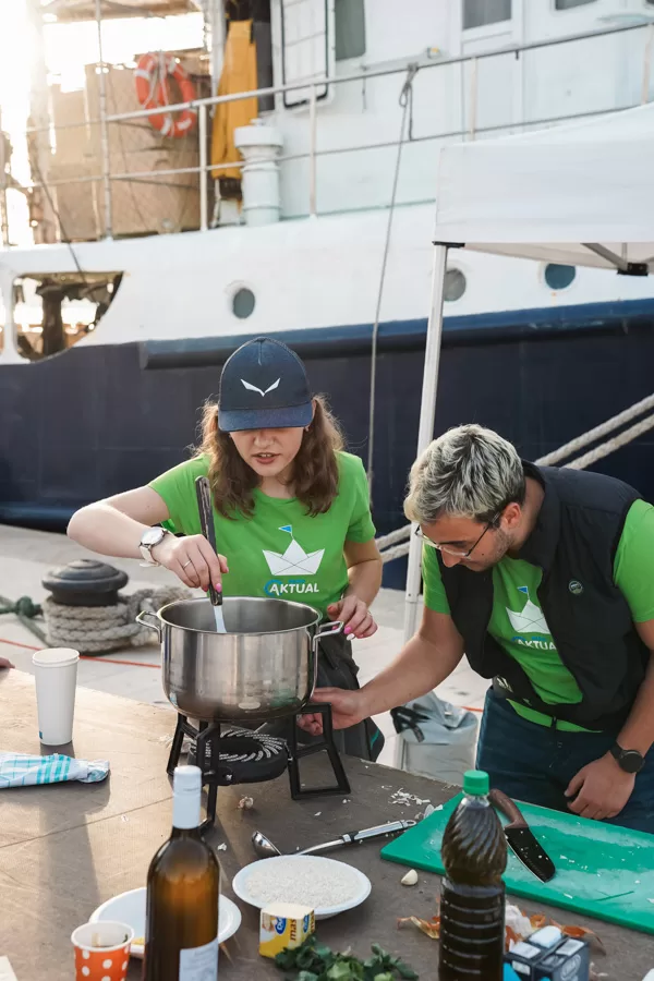 Kuhanje je teklo lagano, uz podlijevanje rižota i grla, a porcije su brzo nestale iz velike zdjele u kojoj se rižoto kuhao.