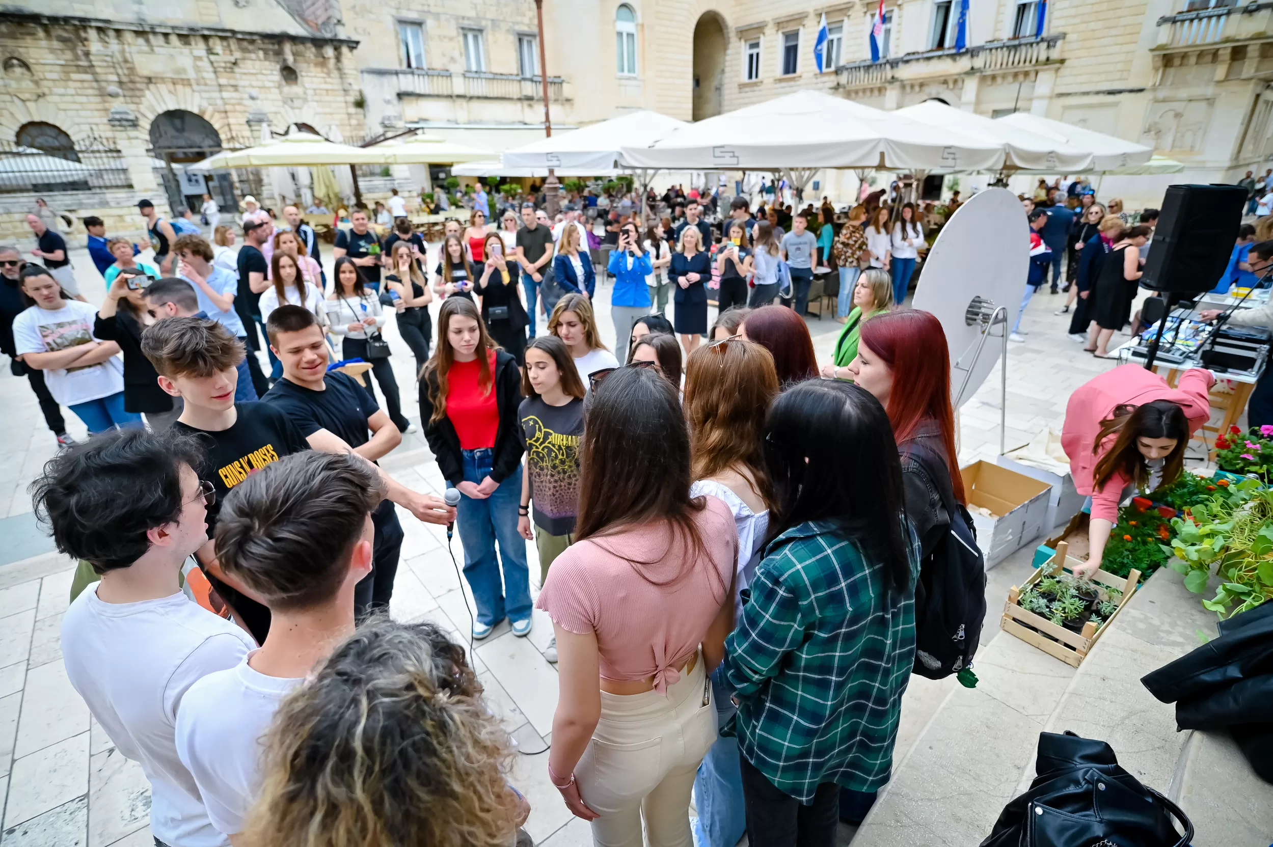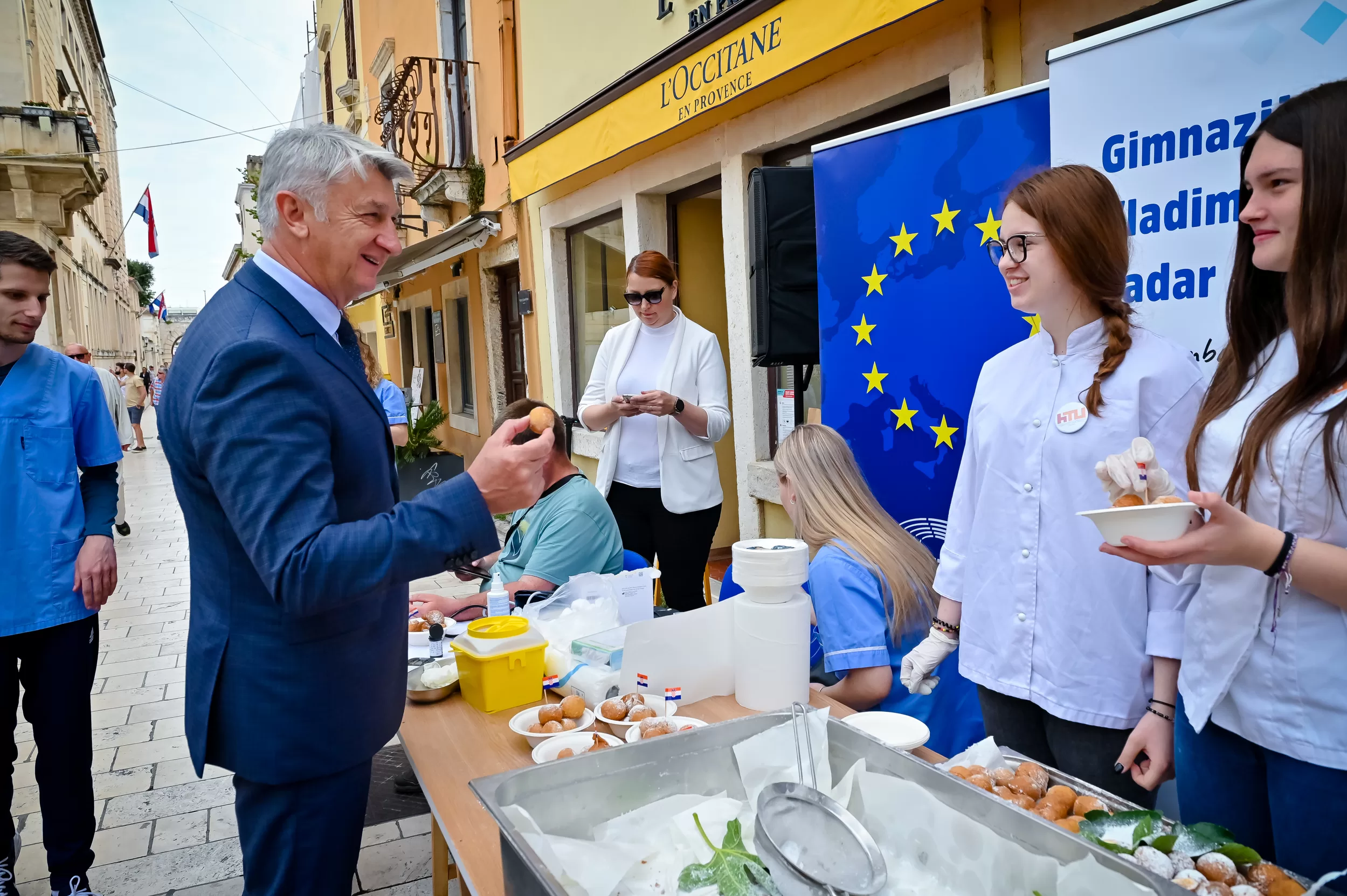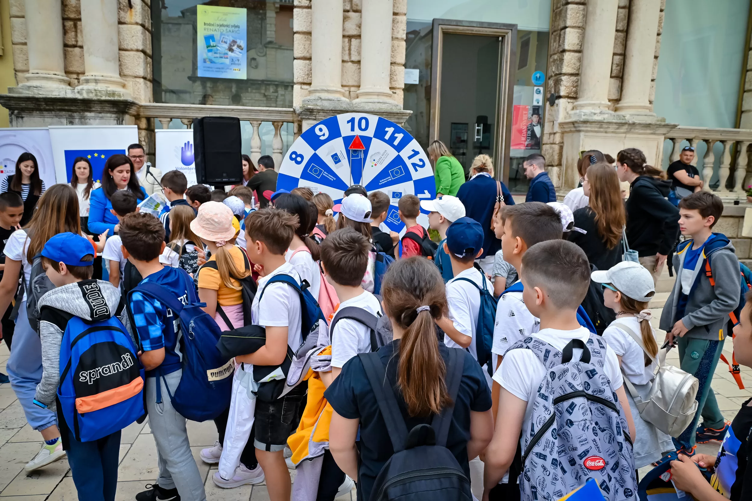 Učenici iz škola ambasadora Europskog parlamenta i tim centra EUROPE DIRECT Zadar građanima su dijelili EU publikacije te prigodne poklone i iznenađenja, a posjetitelji su se mogli okušati i u „kolu sreće“ u kojem nitko nije otišao „praznih ruku“. U skladu s proljetnom atmosferom okupljeni su imali priliku osvojiti i sadnice cvijeća koje su uzgojili učenici Poljoprivredne, prehrambene i veterinarske škola Stanka Ožanića Zadar. Kod učenika Medicinske škole Ante Kuzmanića Zadar posjetitelji su mogli izmjeriti tlak i glukozu u krvi te se osladiti domaćim fritulama koje su pripremili učenici Hotelijersko turističke i ugostiteljske škole Zadar.