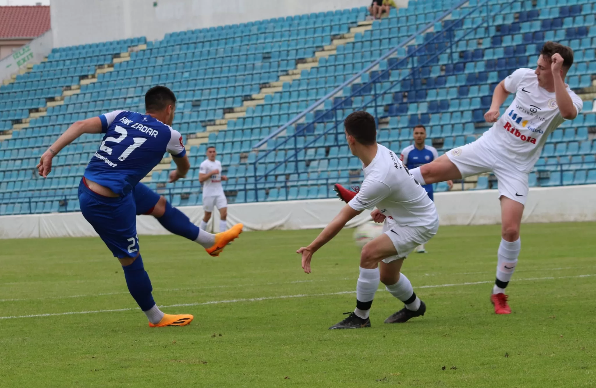 HNK Zadar je pred samo 70 gledatelja na Stanovima slavio protiv GOŠK Kaštela s 3-1, u pretposljednjem 29. kolu četvrtog ranga natjecanja, 3.NL-jug. Poveli su gosti iz kontre preko Tina Jukića-Peladića (15.), nakon što je loptu na svojoj polovici izgubio Goran Zakarić. Zadrani su poravnali u 25. minuti pogotkom Zakarića udarcem s četrnaest metara, lopta je završila u desnoj strani gostujućeg vratara Ivana Ninčevića. Zakarić je s četiri metra zatresao mrežu i u 45. minuti, na asistenciju Luke Viduke za vodstvo 2-1. Konačnih 3-1 postavio je, a tko drugi, nego Zakarić (65.) iz blizine s tri metra na asistenciju Hrvoja Rončevića, njegov je to jedanaesti prvenstveni pogodak u dresu Zadra ove sezone.