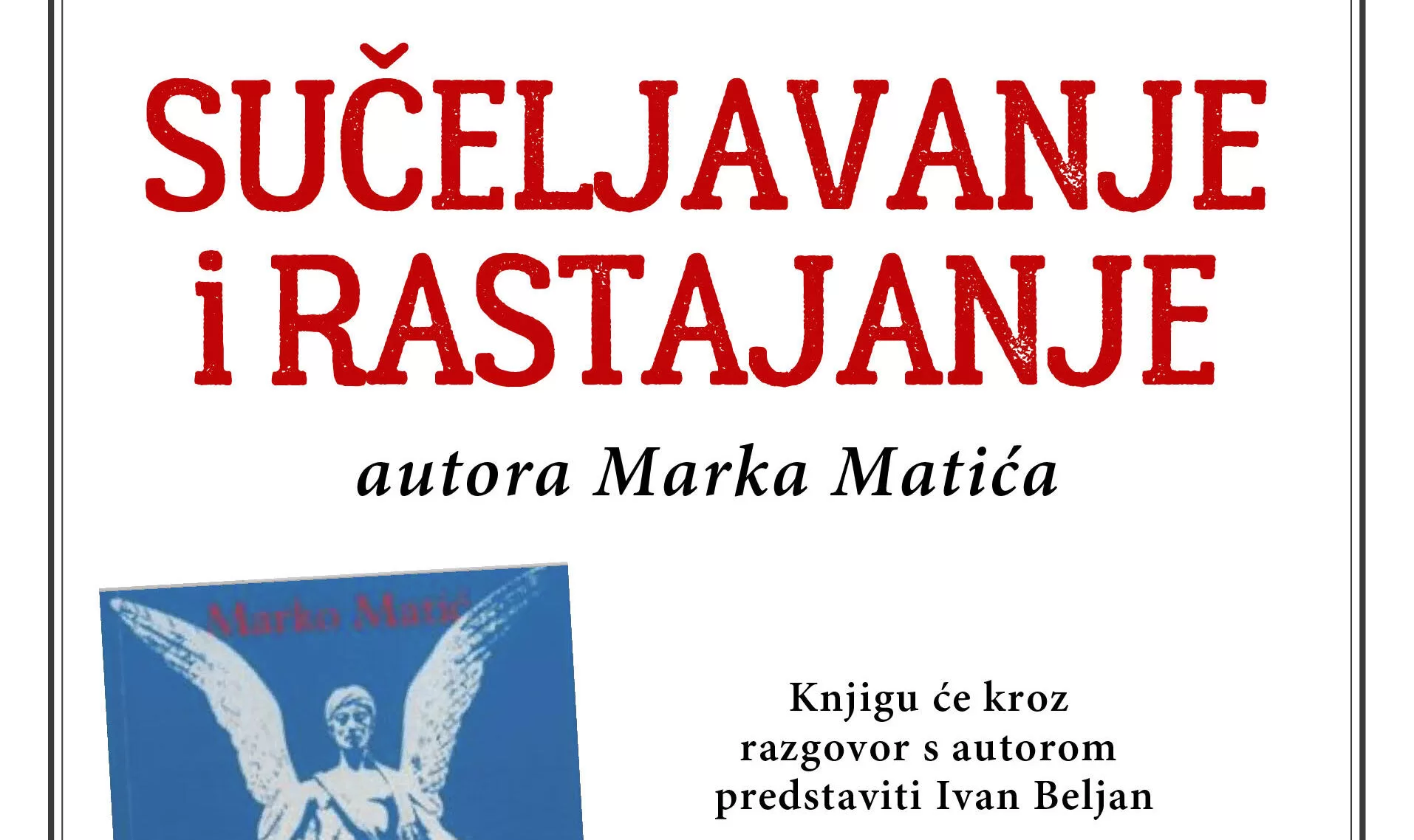 Knjigu Marka Matića “Sučeljavanje i rastajanje” u Matici hrvatskoj predstavlja Ivan Beljan