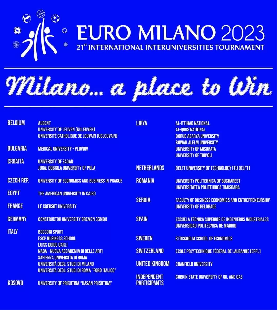 Na dvadeset i prvo izdanje međunarodnog studentskog turnira “Euro Milano 2023” koji se od 04. do 07.05. održava u Milanu krenule su ženska odbojkaška i muška futsal ekipa Sveučilišta u Zadru, javlja UniSport ZD.