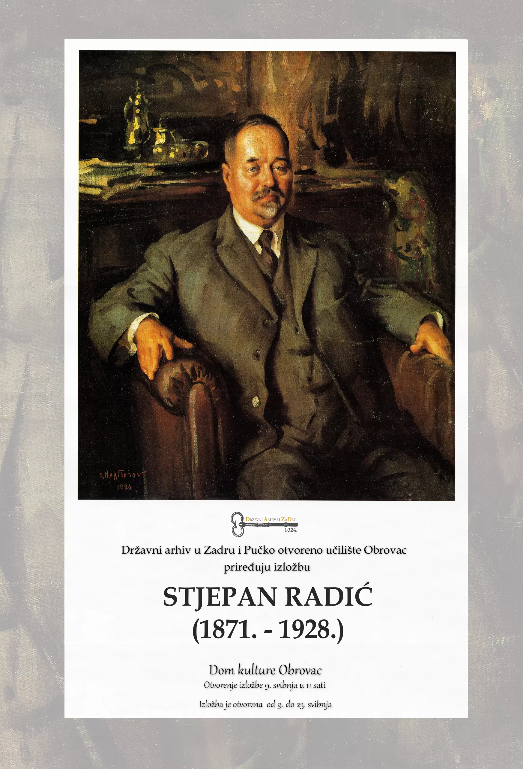 Državni arhiv u zadru i Pučko otvoreno učilište priređuju otvorenje izložbe „Stjepan Radić (1871.-1928.)” u utorak, 9. svibnja u 11:00 sati u Domu kulture Obrovac.