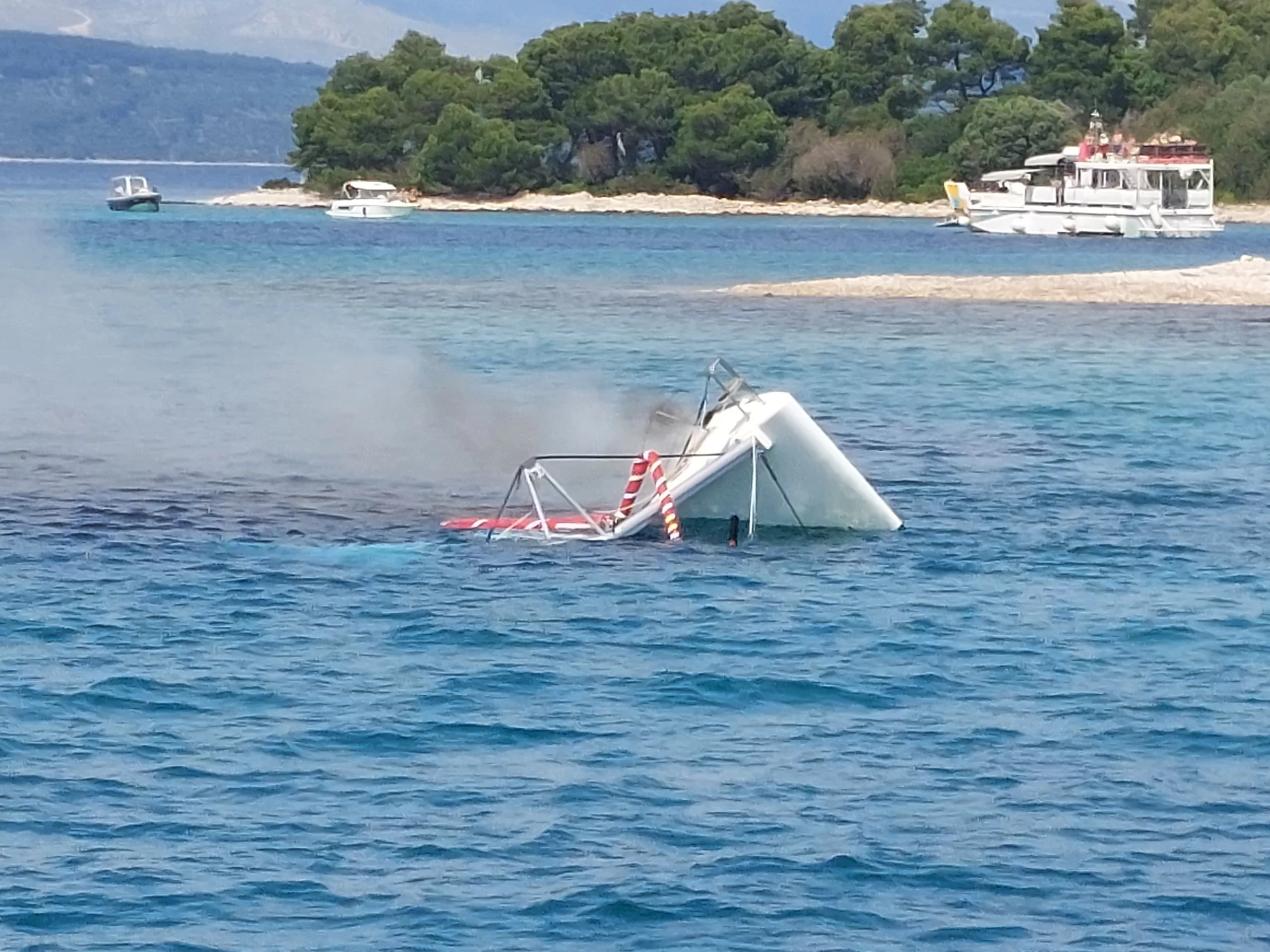 Službenici splitske Kapetanije u okviru očevidnih radnji utvrdili su da je brodicu tipa dvotrupne jedrilice imena „Gray Goose II“, duljine 13,96 metara, zastave Hrvatska te u vlasništvu hrvatske charter tvrtke zahvatio požar zbog trenutno nepoznatog uzroka.