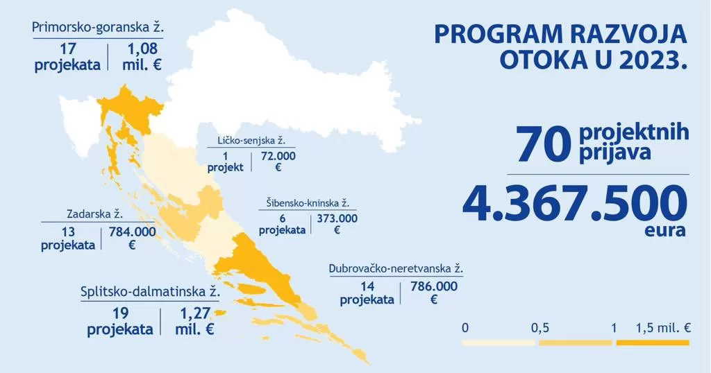 Putem ovogodišnjeg Programa razvoja otoka podržat će se 70 projekata ukupnog iznosa 4,4 milijuna eura, što predstavlja najveći broj projekata i najveći iznos u državnom proračunu osiguran za ovu namjenu u zadnjih deset godina.