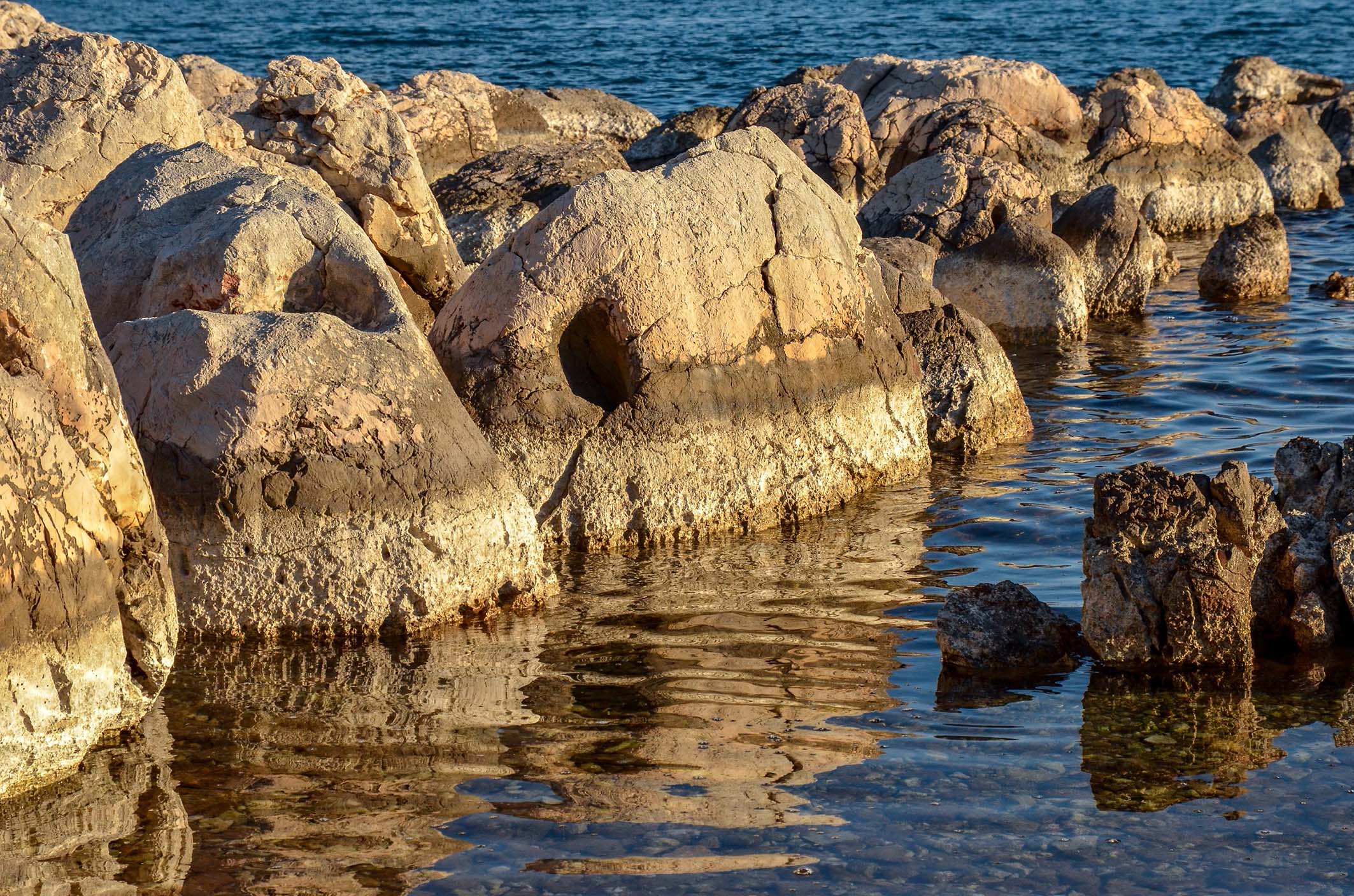 Raznolike vremenske pojava snimili su Tihomir Gržinčić otok u magli snimkom nas podsjeća na mističnost otoka, a Ratko Mavar snima početak burnog vremena prikazom razigranih zgusnutih oblika oblaka, obasjane kamene obale i valovito modro more pred neveru.