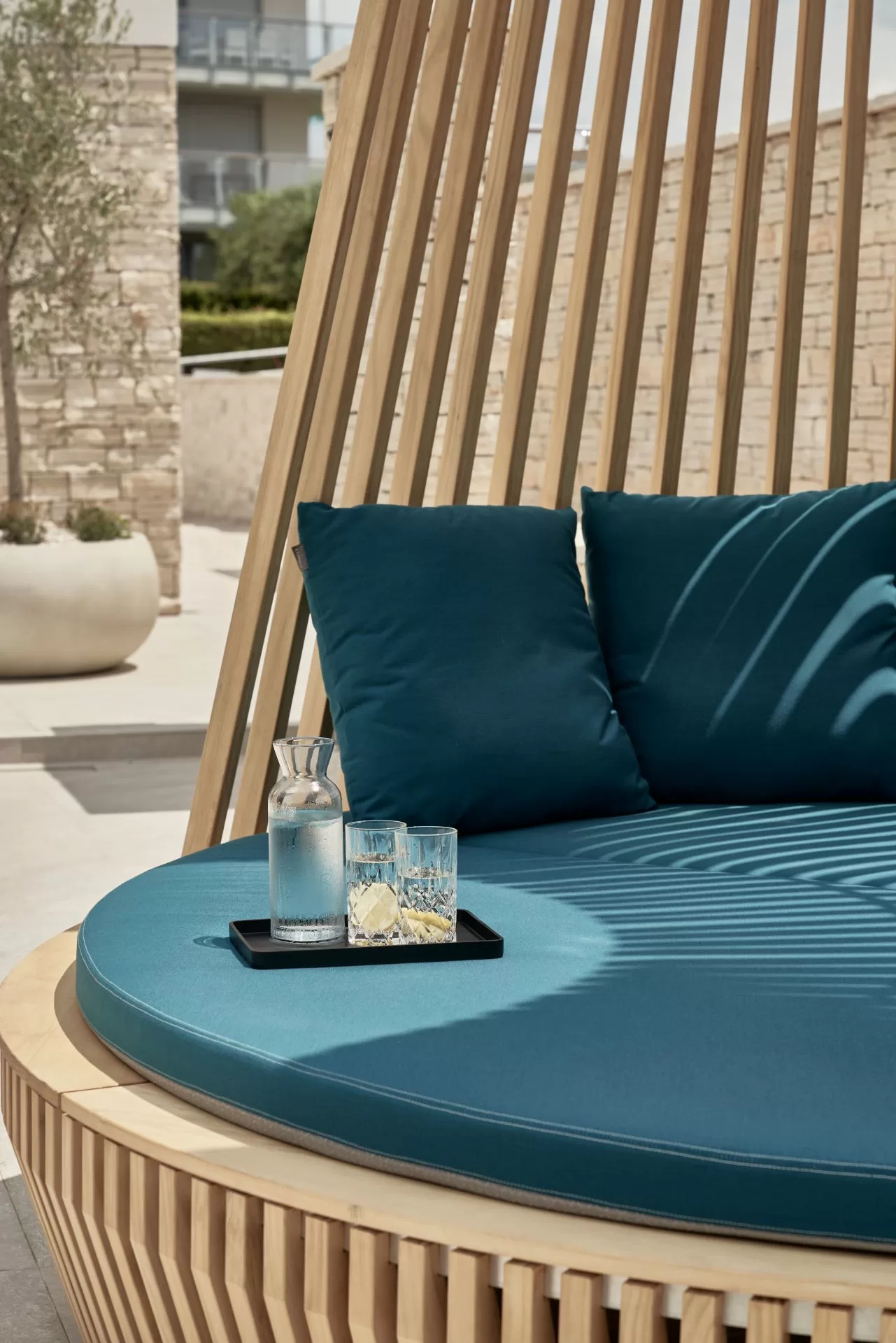 – Prilikom projektiranja nastojali smo stvoriti ugodan i zaštićen interijer s glatkim prijelazima između unutarnjih i vanjskih životnih prostora. Središnji element dizajna su dvokatni stupovi postavljeni ispred vila koji drže balkon i istaknuti krov pergole kako bi pružili potrebnu hladovinu. Ovi stupovi daju jedan ritam koji također povezuje pet vila u skladnu cjelinu sličnu arkadnoj strukturi, dodaje Stephan.