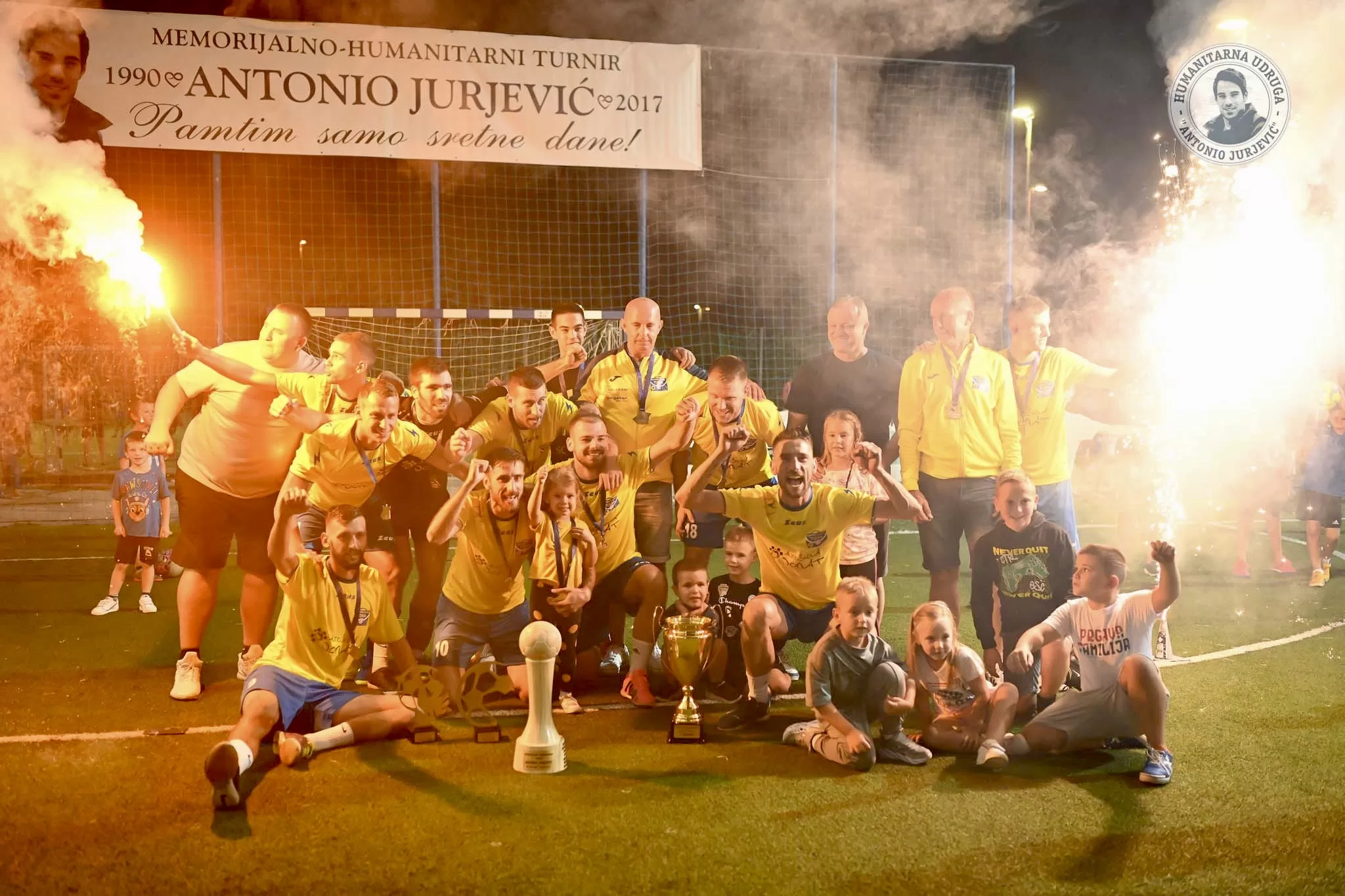 Sve okupljene oduševila je i velika bakljada koju su članovi udruge priredili u spomen na njihovog prerano preminulog prijatelja. Na sredini malonogometnog terena razvili su logotip humanitarne udruge na kojem se nalazi fotografija Antonia Jurjevića, a uz baklje u pozadini je svirala i zaštitna pjesma udruge “Pamtim samo sretne dane”.