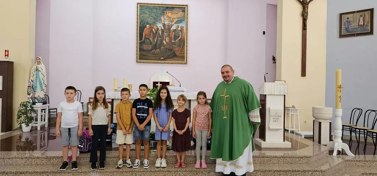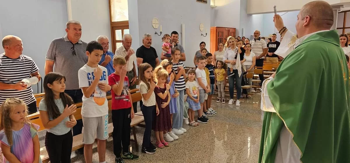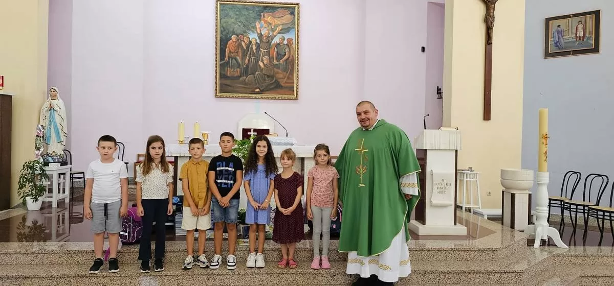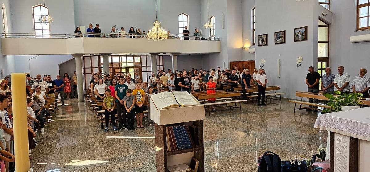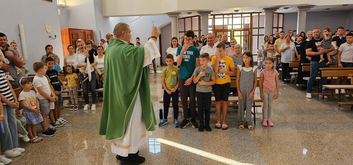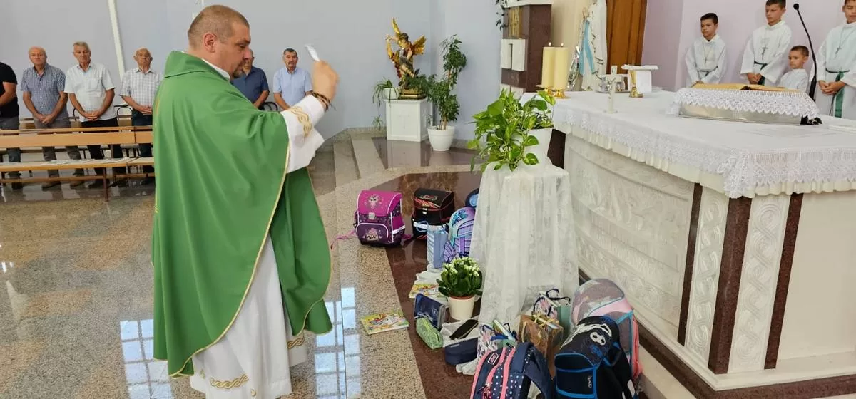 – Draga braćo i sestre, ovu nedjelju ćemo posebno moliti da Gospodin blagoslovi svu školsku djecu. Draga djeco. budite otvoreni Bogu i slušajte svoje roditelje. Blagoslovit ću vas, vaše torbe, knjige i krunice koje će te kasnije dobiti. Kada molite bit će te drugačija djeca i drugačije će te učiti. Bog nek vam bude na prvom mjestu, ne bojte se ničeg jer će vas Bog blagosloviti i bit će vam u pomoći u sve dane vašeg života, kazao je fra Božo Mandarić.