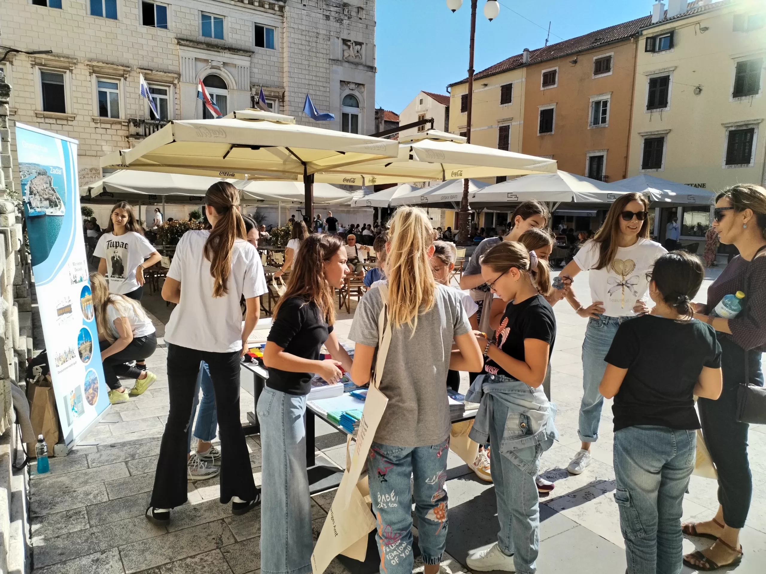 Zadarski učenici osnovnih škola i ove su godine obilježili Europski dan jezika promocijom njemačkog jezika koja se na poticaj Zadarskog ogranka KDV – Društva učitelja i profesora njemačkog jezika održala utorak, 26. rujna od 10.00 do 12.00 sati na Narodnom trgu u Zadru.