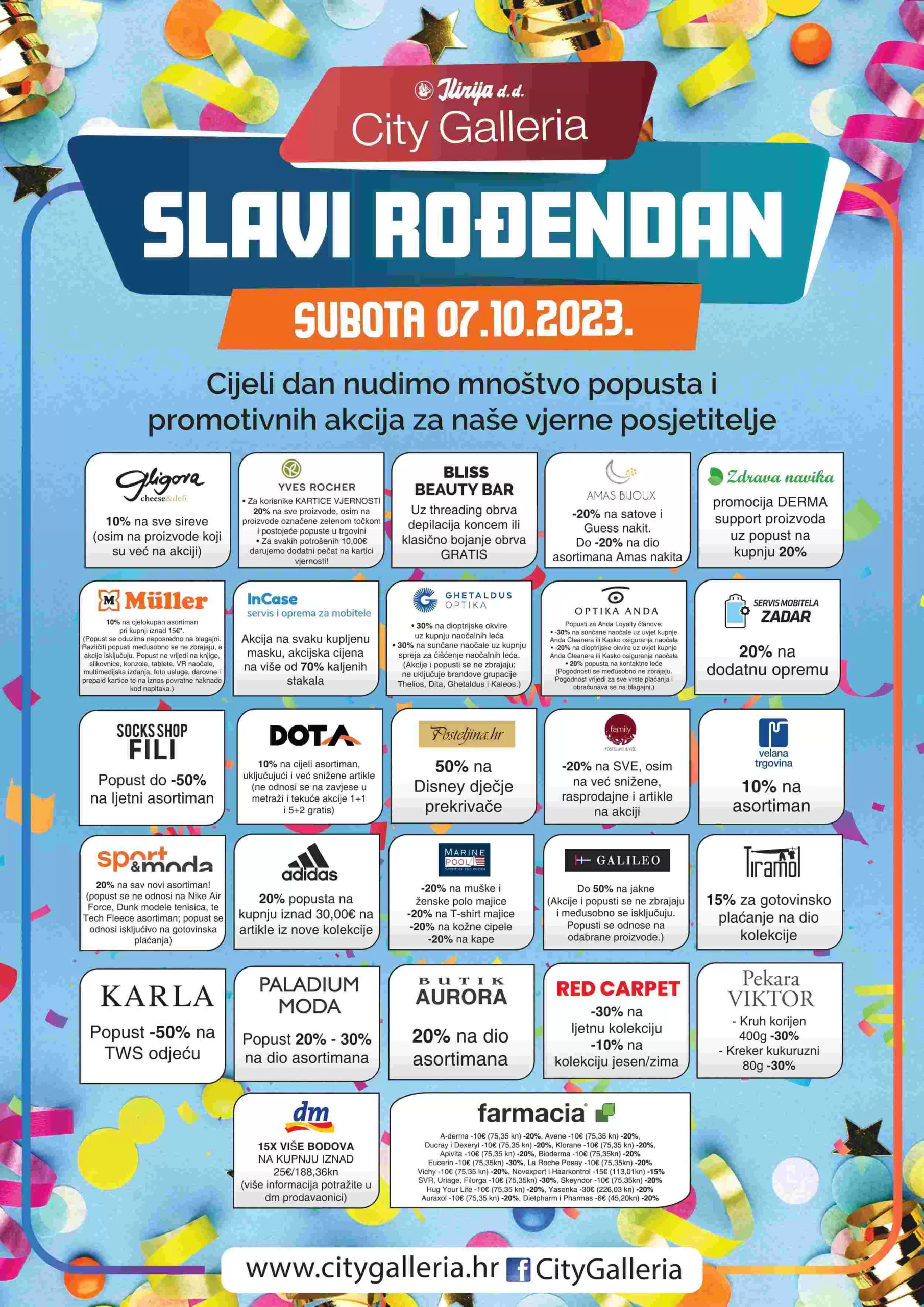 Nijedna rođendanska proslava ne može proći bez odličnih popusta – trgovine centra će vam kroz cijeli dan nuditi mnoštvo odličnih popusta i promotivnih akcija za najbolji rođendanski shopping, a detaljan popis akcija i popusta potražite OVDJE.
