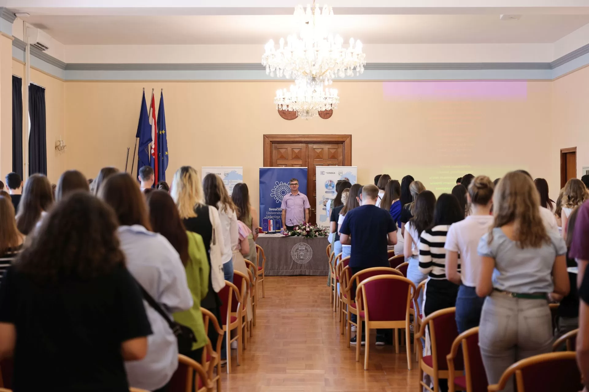 Uz rektora Faričića studentima su dobrodošlicu poželjeli voditeljica Ureda za prijediplomske i diplomske studije Meri Lukić, predstavnik Studentskog zbora Renci Balić i dojučerašnja studentica Lucija Grabovac. Potaknuli su ih da se uključe u studentski život, a za sve izazove koje budu imali pomoć će im ponuditi starije kolege iz Studentskog zbora, posebice oko sudjelovanja u projektima i otklanjanja pojedinih prepreka u pohađanju studijskih programa.