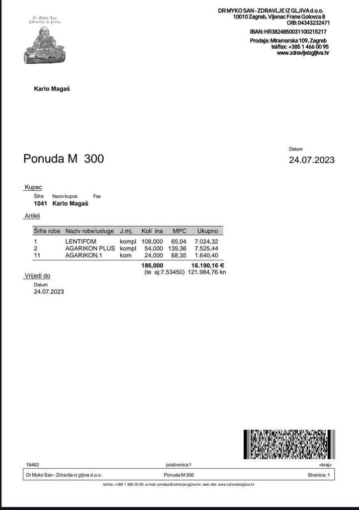 – Dragi prijatelji ovim putem vas obavještavamo da Karlo sutra ide na operaciju u Klaićevoj. Od sveg srca se nadamo i molimo da operacija prođe uspješno. Nakon operacije potrebna mu je terapija – lijek iz gljiva koje su do sada pokazale pozitivan rezultat i bolest u kontroli. Zbog toga objavljujemo ovaj predračun privatne imunoterapije koju ne pokriva HZZO, navodi se u objavi na ovoj stranici.