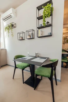 Naš prostor sada nudi 50 sjedećih mjesta unutar bistroa i dodatnih 30 mjesta na vanjskoj terasi. U intimnoj atmosferi unutrašnjosti ili uživajući na sunčanoj terasi, gosti mogu degustirati naše specijalitete. Za one koji dolaze autom, osigurali smo parking za sve naše goste.