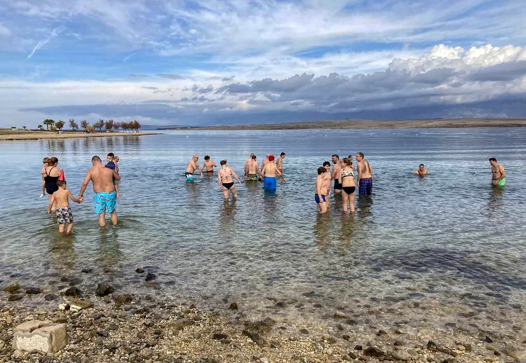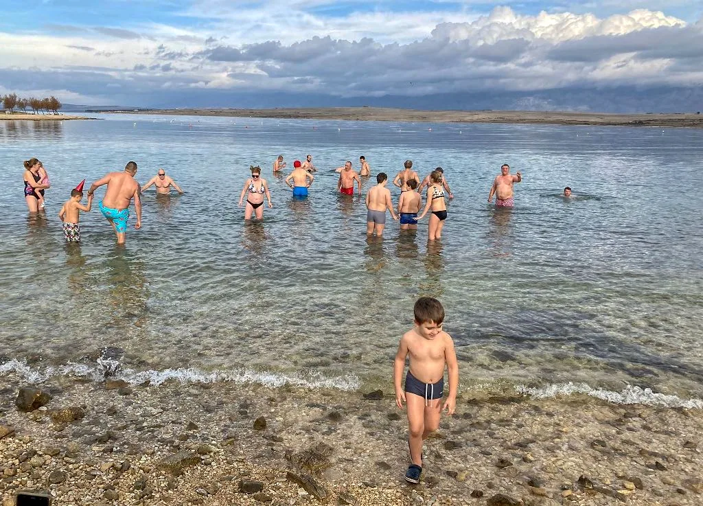 Prvi dan 2024. Mađari su na otoku Viru odradili radno na približno 13 stupnjeva temperature mora u Kanalu Nove Povljane i 16 proljetnih vanjskih stupnjeva, okupavši se na plaži u Straži.