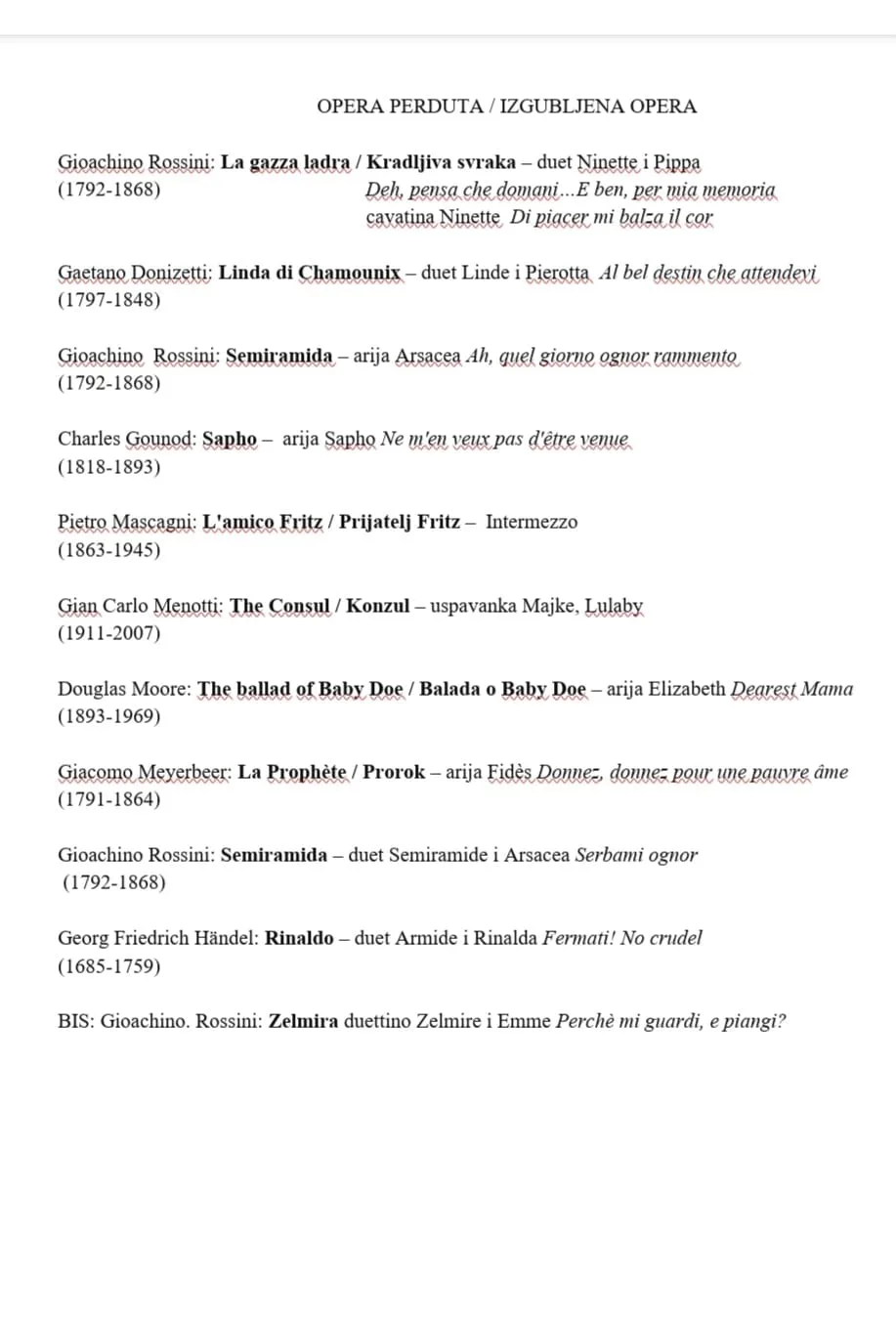 Naime, naziv koncerta je “Opera Perduta” na kojem nam sopranistica Nela Šarić i mezzosopranistica Nera Gojanović donose prekrasan program sastavljen od arija i dueta iz nikad izvedenih opernih naslova u Republici Hrvatskoj!