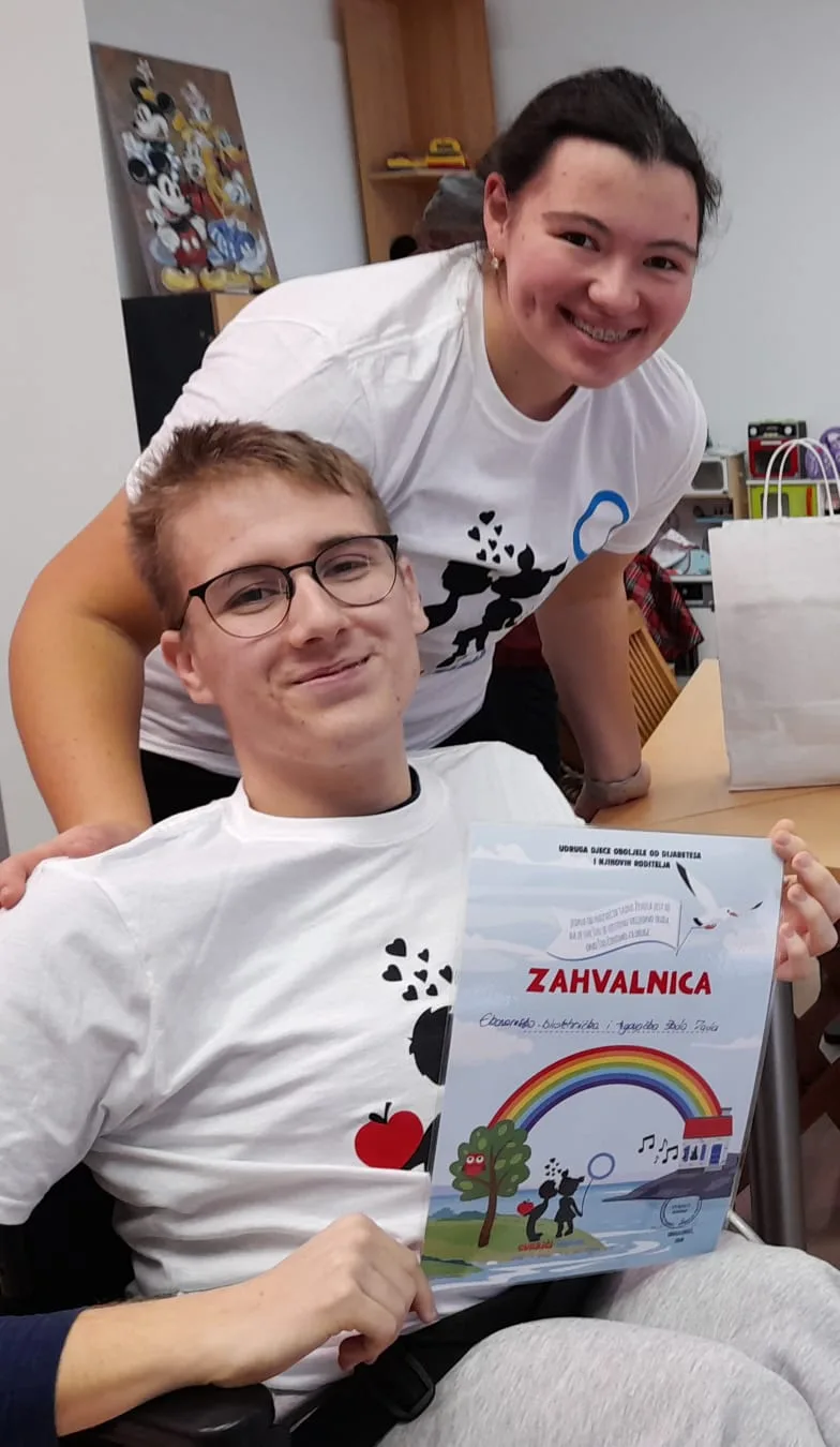 Predstavnici volontersko-likovne radionice „Pinel“, profesorica Katja Vladičić i učenici Tea Mraović i David Babac uručili su vrijednu donaciju za Udrugu djece oboljele od šećerne bolesti i njihovih roditelja „Cukrići“.