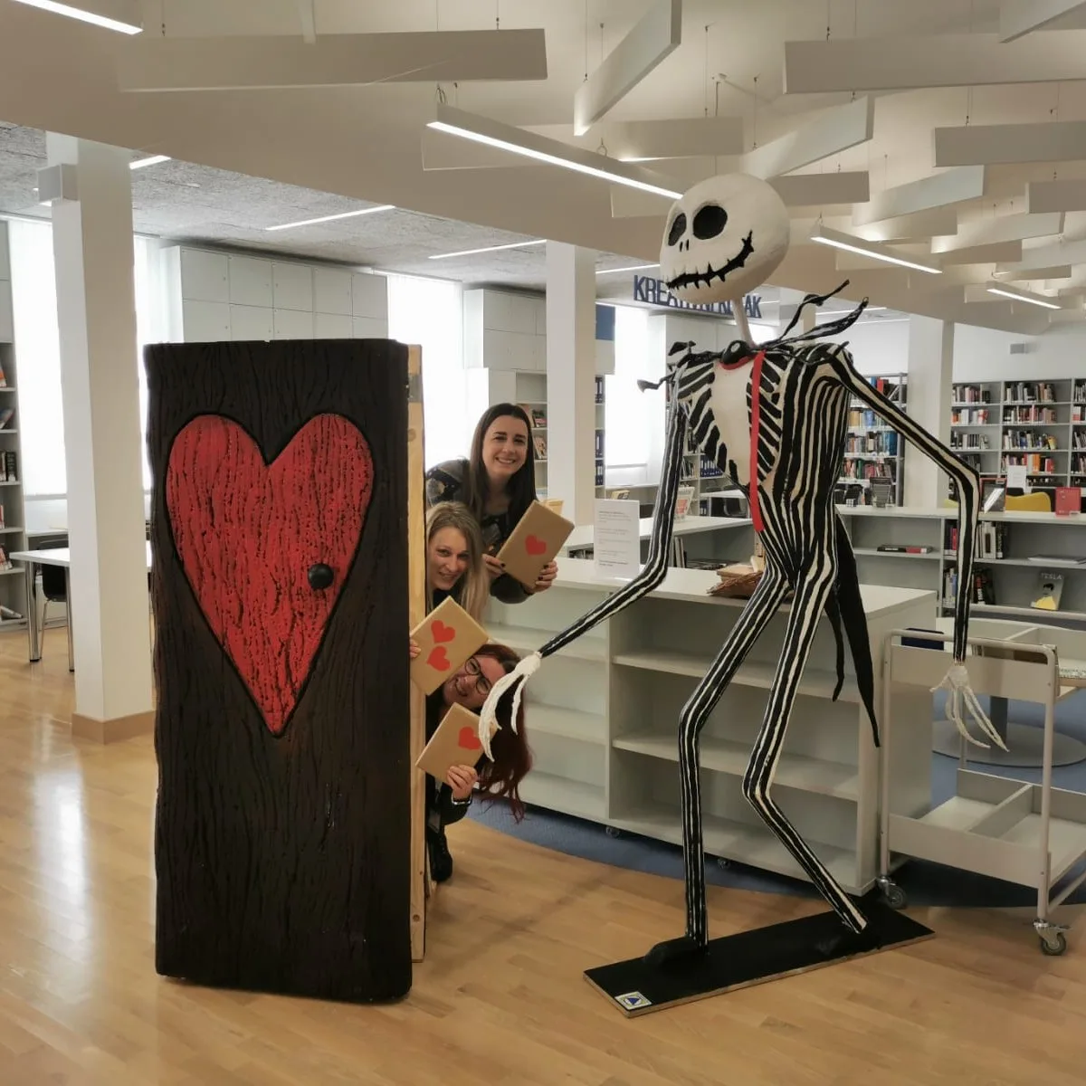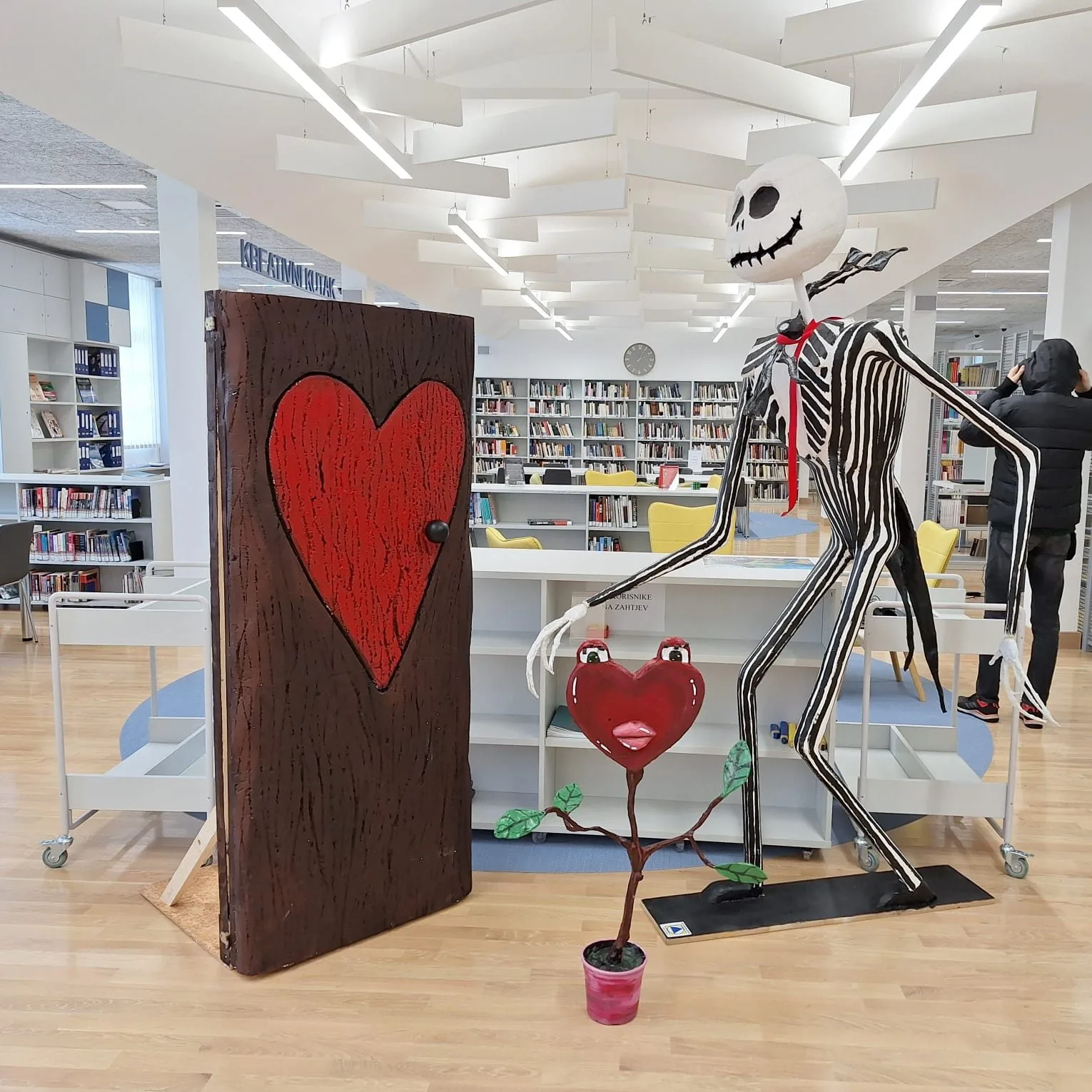 – Zahvaljujemo ŠPUD-ovcima koji su nam s velikim trudom ukrasili prostor, bivšoj maturantici Larisi Galac koja je izradila Jacka te prof. Igoru Budimiru koji je unaprijedio Larisina vrata i prof. Veroniki Šindilj koja je s učenicima izradila dekorativno veselo srce koje od danas raste na Knjižnici, poručili su iz Gradske knjižnice.