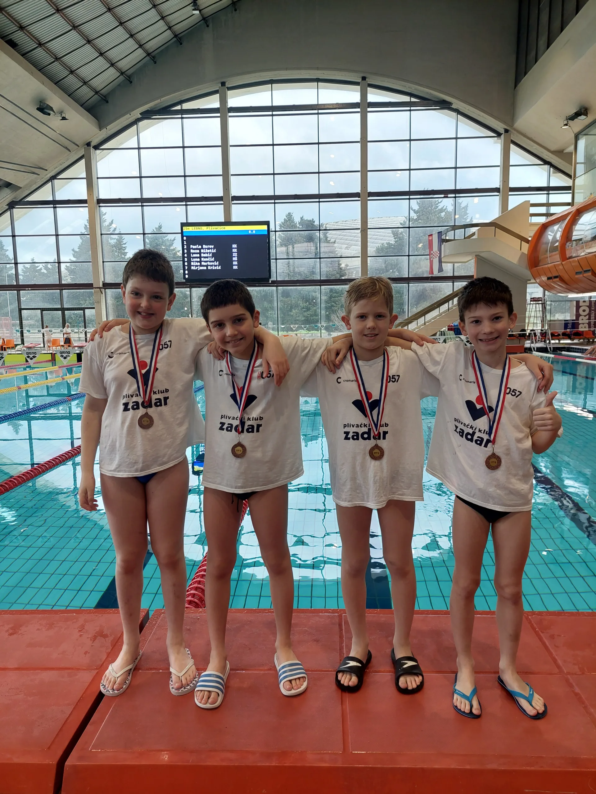 Muška štafeta na 4x50m slobodno (2:42.09) u sastavu: Matej Sinovčić, Noa Jureško, Leni Matulić, Mikula Jordan, plasirala se na 3. mjesto te su plivači osvojili brončanu medalju.