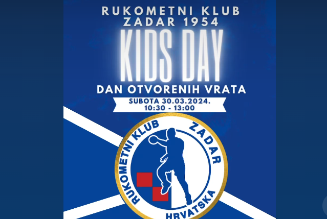 Rukometni klub Zadar 1954 poziva nas da se pridružimo na povijesnom mjestu- na zadarskom Forumu, ispred Crkve svetog Donata – gdje će u subotu, 30. ožujka, u trajanju 10:30-13:00 organizirati -“Kids day”, u sklopu kojega će predstaviti -Školu rukometa i sam Klub našim sugrađanima.