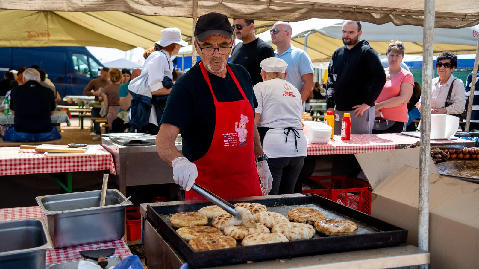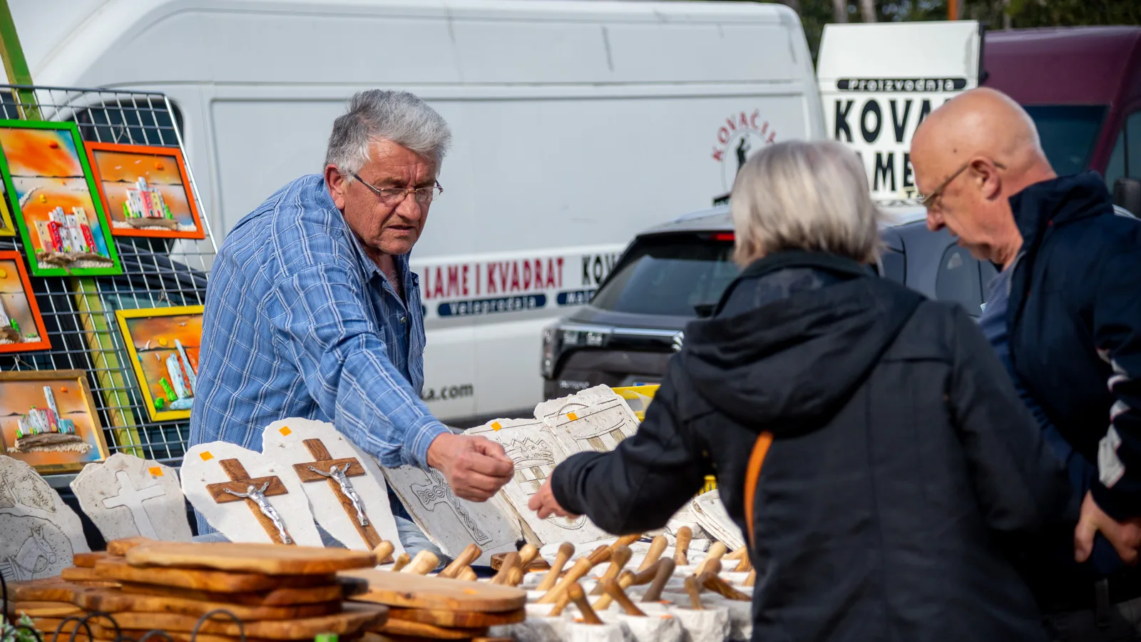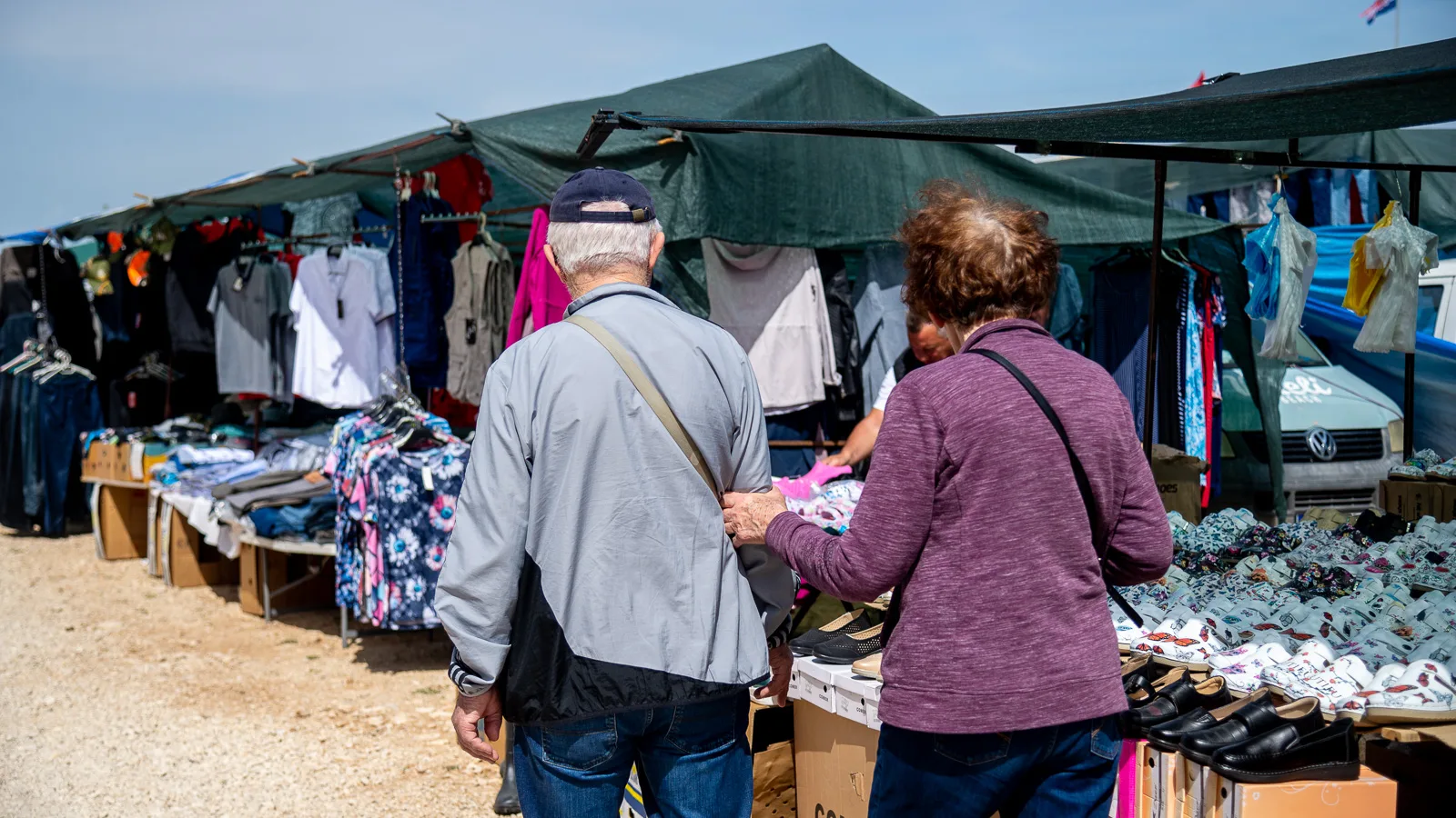 Duga rijeka posjetitelja sijevala se odasvud, sunce je pržilo ali to nikome nije smetalo, pogledavalo se pomno lijevo, desno, zbrajalo, računalo, dogovaralo, pregovaralo, za gradela, peku, luk, kapulu, sir, med, pletivo, opremu za ribolov, elektroniku, korejsku i kinesku digitalu, šlape, majicu, rabljeni i novi namještaj…