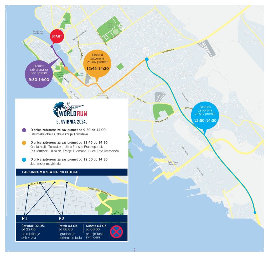 U nedjelju, 5. svibnja, s Liburnske obale u Zadru startat će novo izdanje utrke Wings for Life World Run. Ova tradicionalna međunarodna utrka kojom se prikupljaju sredstva za istraživanje liječenja ozljeda leđne moždine od svog prvog izdanja održava se u Zadru, a ove godine i u još 6 europskih gradova kroz službene utrke na lokaciji: Beč (AUT), München (GER), Poznan (POL), Prag (CZE), Ljubljana (SLO), Zug (SUI). Naravno, utrke uz aplikaciju održavaju se na mnogim drugim lokacijama pa tako cijeli svijet kreće istovremeno s utrkom za one koji ne mogu.