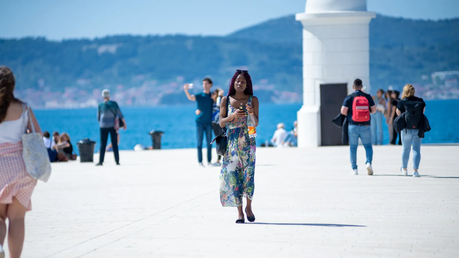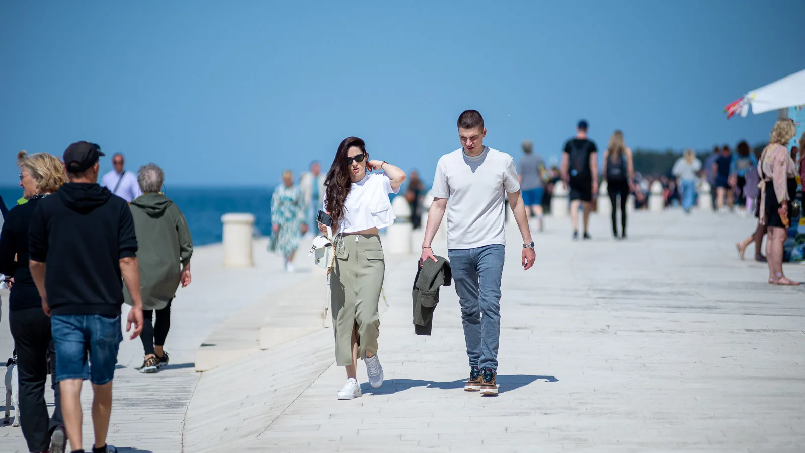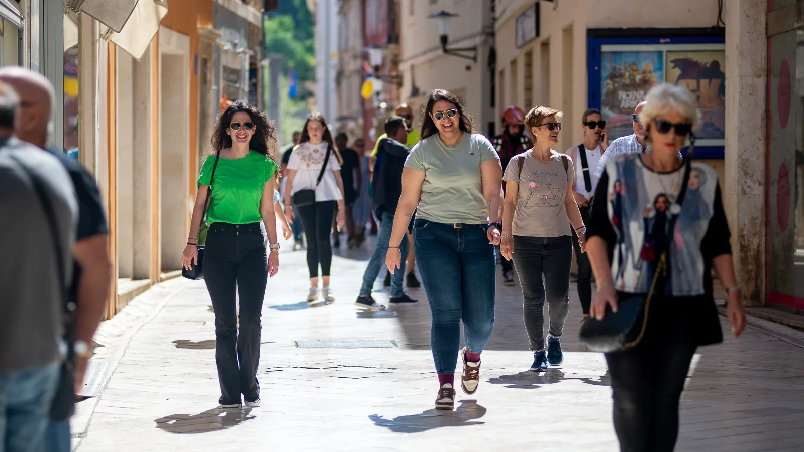 Harmonika, gitara, plesni koraci u kantunu Donata, Ivčić iz zvučnika, glazba s otoka, dječji plač iz kolica, Loptica u igri, Venci, Relaks u koracima, na Orguljama – Baby Lasagna, dovikivanje prodavačica s tržnice, iz ribarnice i Konzuma, pudlica kod Kazališta pozdravlja prolaznika, Rocky se zove kaže vlasnica, nije lik iz prekrasnog filma, ili je jer je ipak iz Zadra. Mačkica Kitty u šetnji, na Bedemima biciklisti, mašu sa zidina.