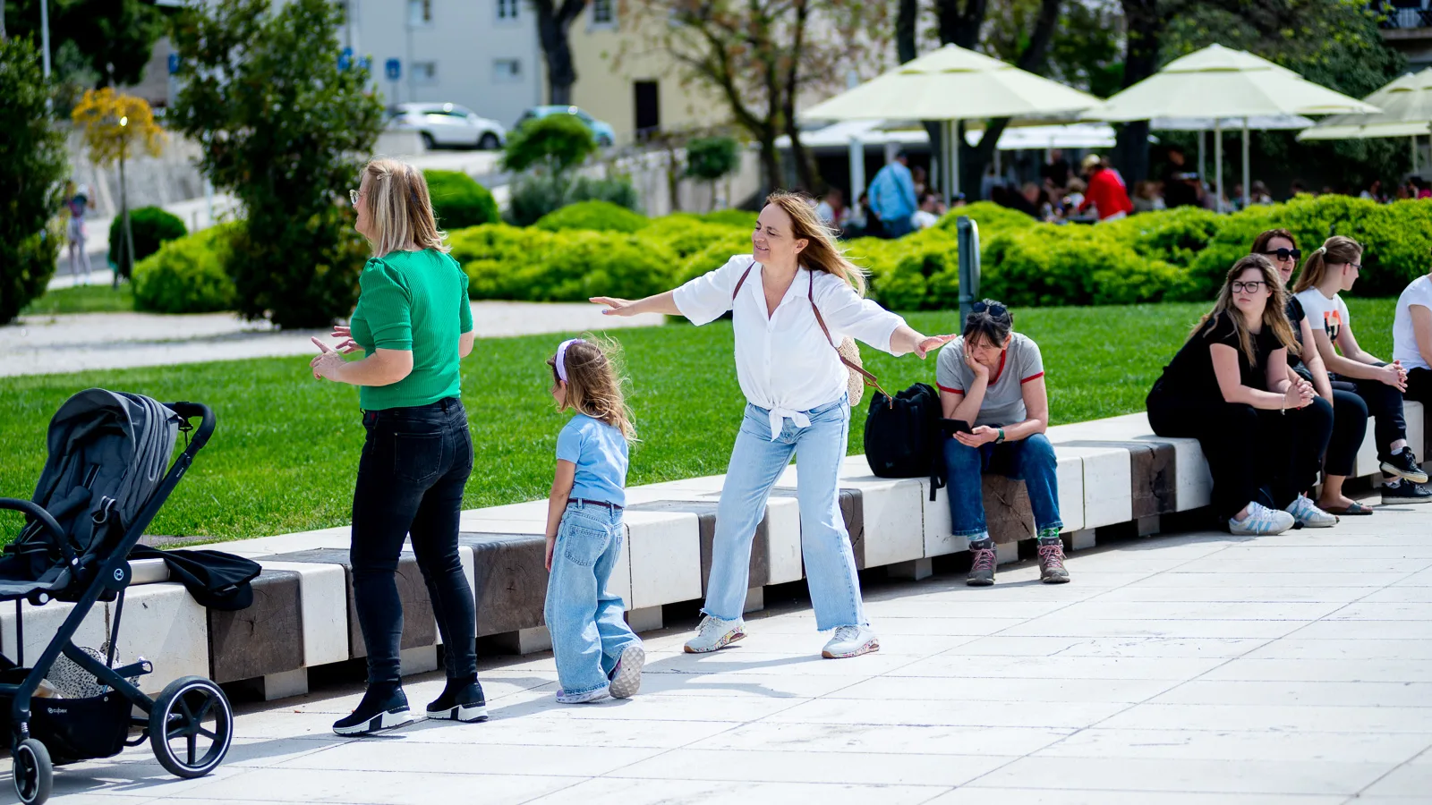 Kakav dan, fibra na iznad+25, sunce je dobrano upeklo da su tamne cvike bile nedostatne, suncobrani su postali obaveza ugostiteljima, šudari bakicama na bancima, hladna pića na tacnama konobara, kelnera, kratki rukavi, minice, trikvarte, sandale i kapica neizostavni dio i tekućeg travnja u garderobi Zadranki i Zadrana.