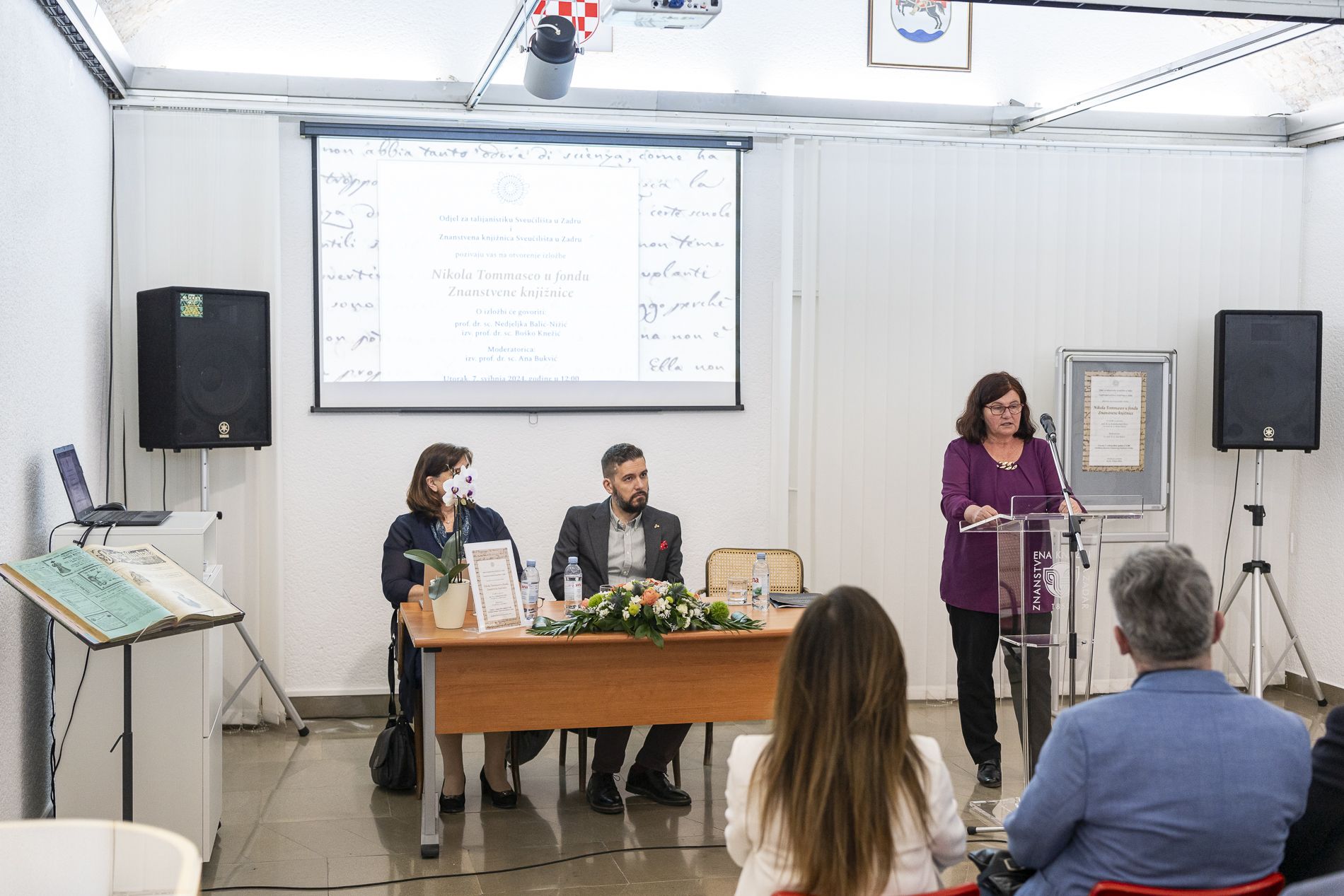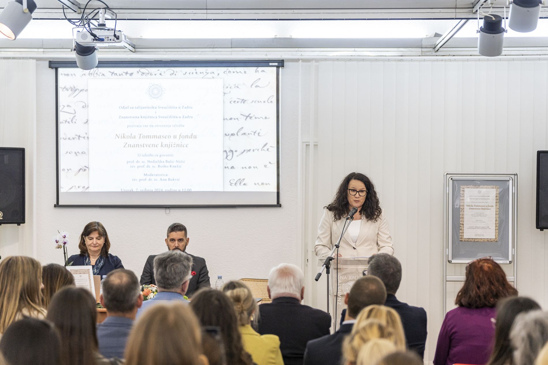 Otvarajući izložbu izv. prof. sr. Sc. Ana Bukvić, pročelnica Odjela za talijanistiku, zahvalila je djelatnicima koji su uz pomoć prof. dr. sc. Nedjeljke Balić Nižić i izv. prof. dr. sc. Boška Knežića priredili izložbu u prigodi obilježavanja 150. godišnjice smrti Nikole Tommasea, središnje ličnosti dalmatinskog ottocenta.
