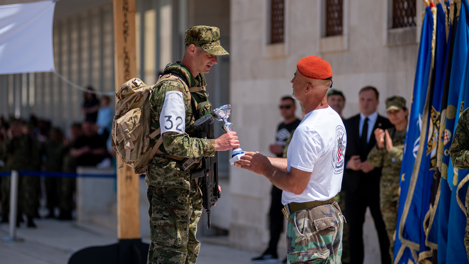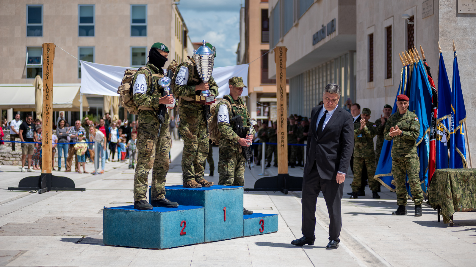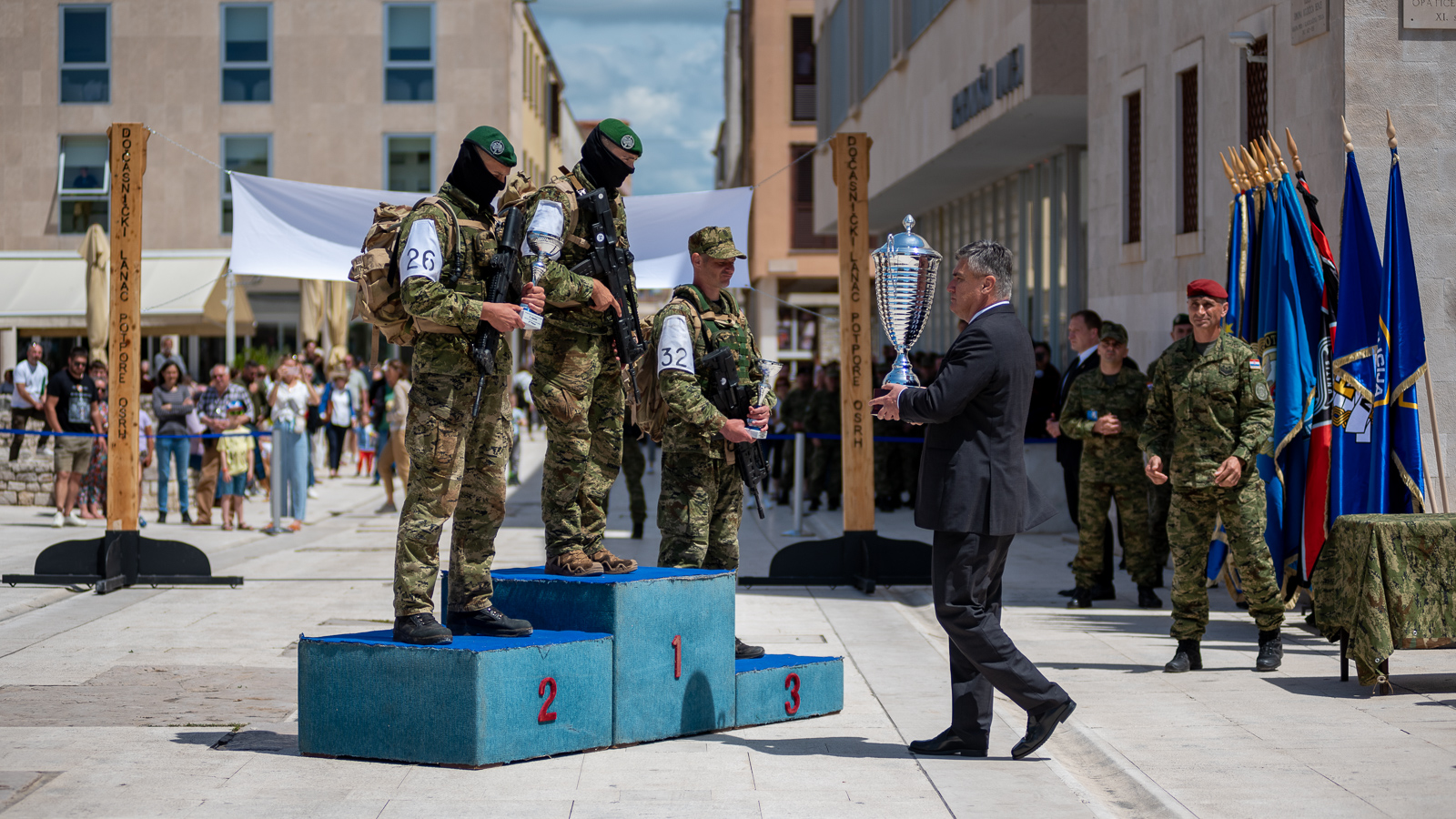 Predsjednik Zoran Milanović potom je uručio pehar pobjedniku Memorijala bojnik Davor Jović – „Natjecanje prvi za Hrvatsku“. Naime, riječ o o natjecanju za najspremnijeg pripadnika Oružanih snaga Republike Hrvatske održanom u bivšoj vojarni u Šepurinama, a cilj je bio prezentirati sve odlike hrvatskog vojnika, počev od požrtvovnosti, hrabrosti, izdržljivost i predanosti.