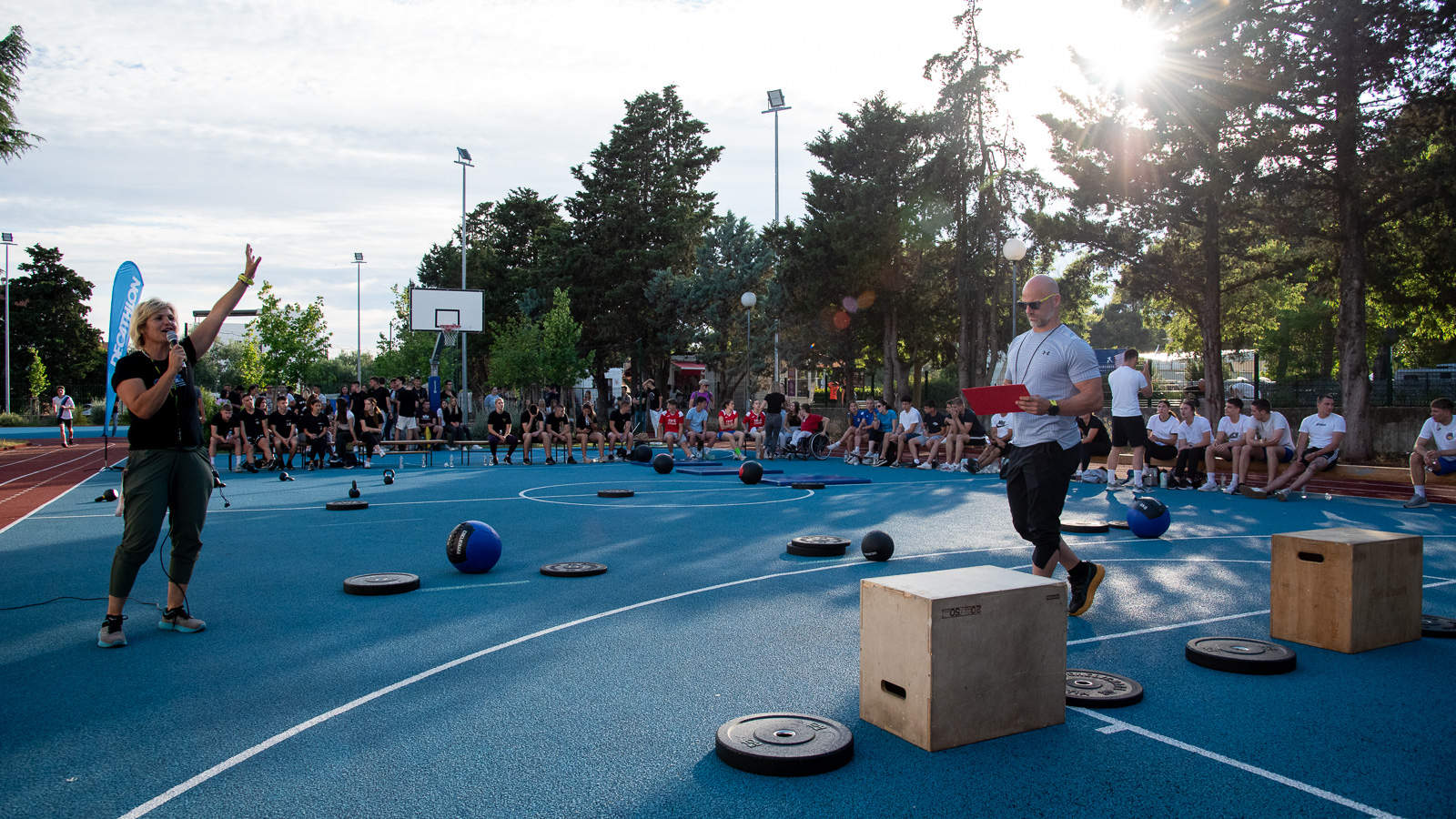 Timovi škola predstavili su se mješovitom ekipom, tri momka – dvije djevojke koji su pokušali u najkraćem mogućem  roku napraviti  čučnjeve s opterećenjem, marince, swing  s girjom uz opterećenje od 12 i 16 kg, sprint od 200 metara, trbušnjke s opterećenjem od 5 kg, wall ball uz 5, 10 i 20 povlačenja na trx trakama, penjanje i spuštanje te prelazak preko klupice s opterećenjem 5 i 10 kg. Vježbe su bile raspoređene u dva izazova po četiri vježbe, vrijeme oba izazova se zbrajalo.