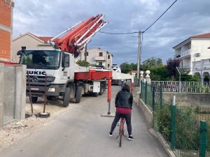 No, ovdje treba obratiti pažnju i na šokantan detalj sa slike – dijete na biciklu koje se pokušava probiti uz kamion! Što bi se dogodilo da ga vozač nije vidio i da je pokrenuo kamion ili da je, ne daj Bože, dio betona pao na njega ili se, kao nedavno u Lovranu, odlomio dio vozila i pao na dijete?!