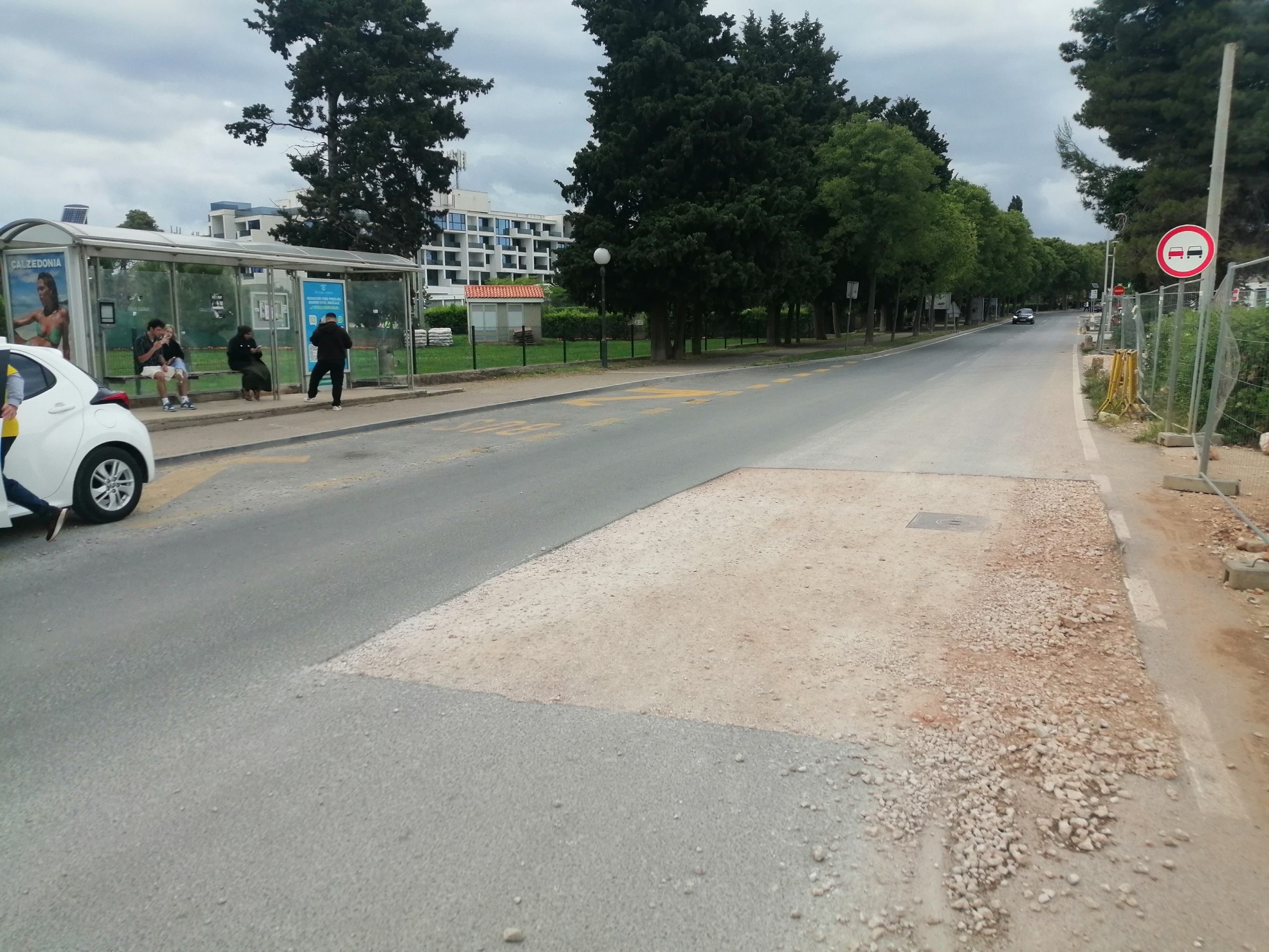 Sezona je već u punom zamahu, pa se promet ispred autobusne postaje odvija otežano jer vozila koja se kreću u jednom pravcu čekaju da prođu ova druga iz suprotnog pravca kako bi mogli prijeći na asfaltirani dio ceste. Tursti koji čekaju na autobus ili idu u obližnji kafić ili na plažu čude se da u srcu turističkog mjesta ovo stoji ovako. Zašto je ovaj dio glavne ceste još uvijek neasfaltiran te kada će to riješiti, pitali smo direktora gradske tvrtke Odvodnja, Grgu Peronju, koji nam je samo kratko SMS porukom odgovorio sljedeće: