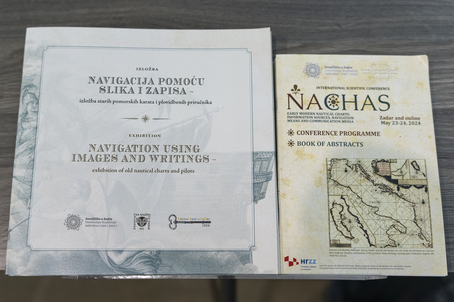Izložba je organizirana u sklopu znanstvenih aktivnosti na znanstvenom projektu IP-2020-02-5339 Ranonovovjekovne pomorske karte Jadranskog mora: izvor spoznaja, sredstvo navigacije i medij komunikacije (NACHAS) koji financira Hrvatska zaklada za znanost. U Izložbenoj dvorani Znanstvene knjižnice Sveučilišta u Zadru može se razgledati do petka 31. svibnja.
