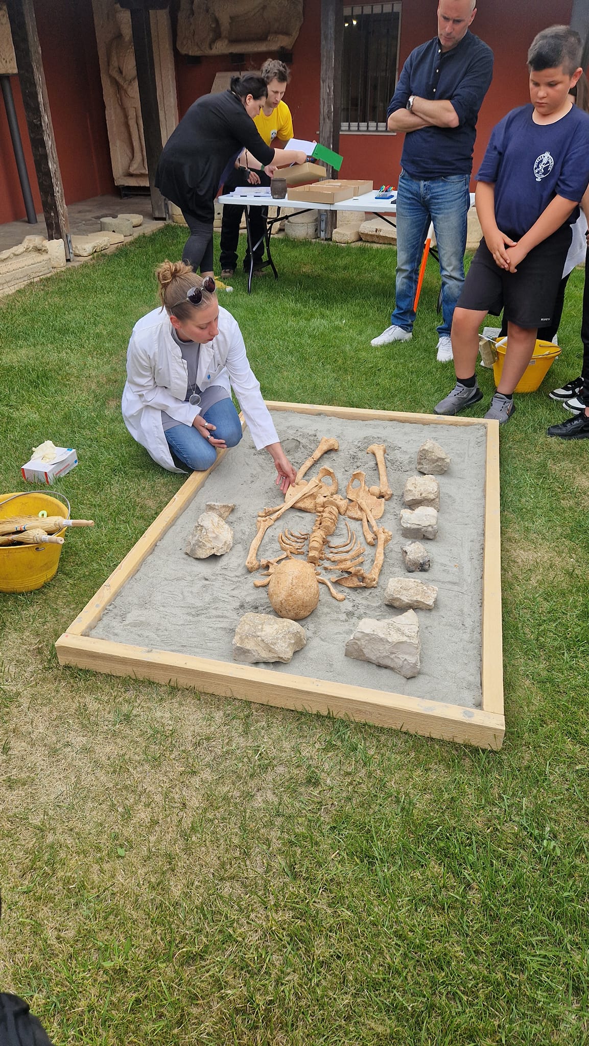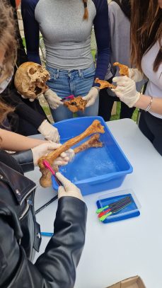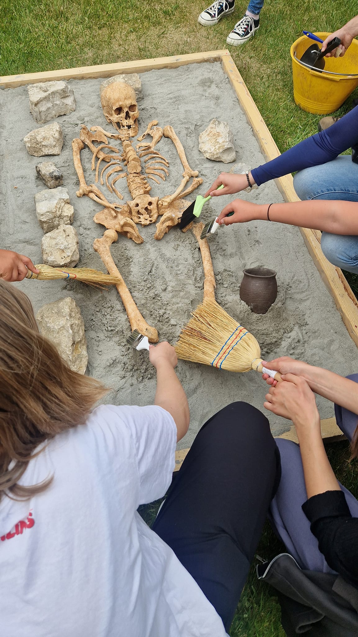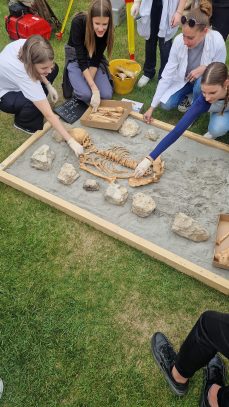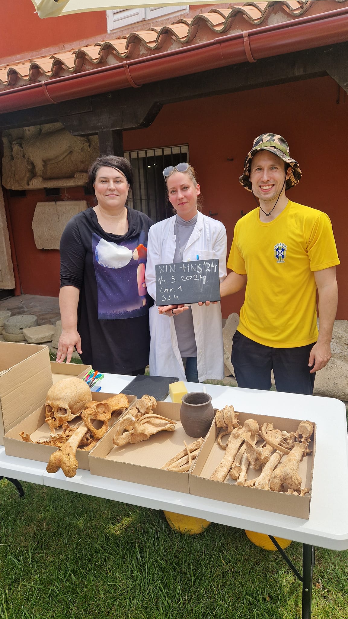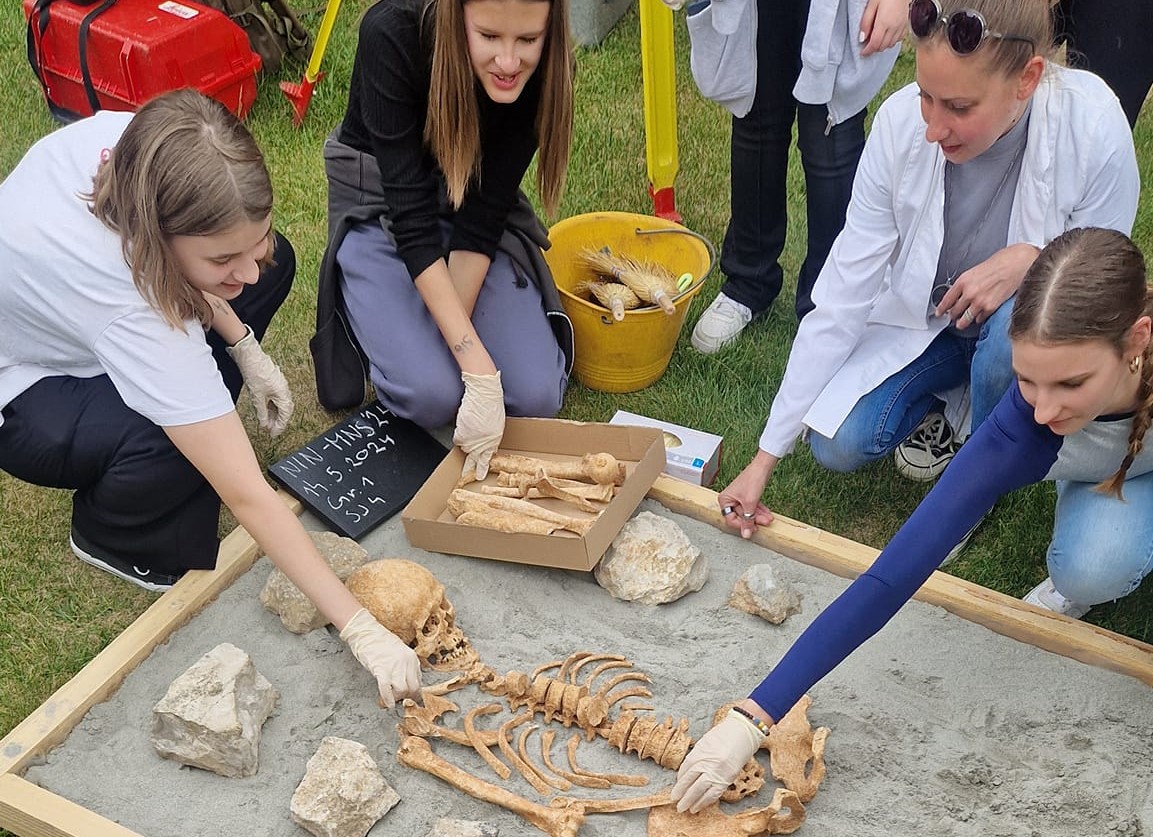 Učenici sedmih razreda Osnovne škole “Petar Zoranić” Nin, iskopali su i temeljito dokumentirali sve nalaze iz groba koji smo izradili po uzoru na brojne ranosrednjovjekovne grobove pronađene na ninskom području. Nakon bilježenja svih podataka, učenici su postupajući dostojanstveno s ostacima pokojnika iz prošlosti, pripremili kosti i zube za bioarheološku analizu. U postavu izložbe “Iz smrti – život”, antropologinja dr. sc. Vlasta Vyroubal s Hrvatske akademija znanosti i umjetnosti, na temelju promjena na kostima i zubima pokojnika pokazala je kako su živjeli Ninjani tijekom 8. i 9. stoljeća.