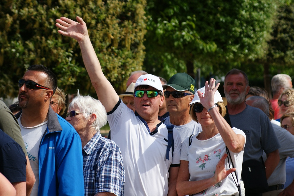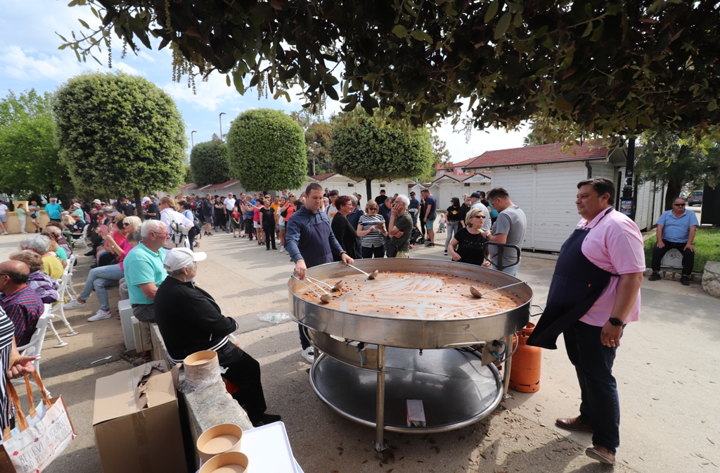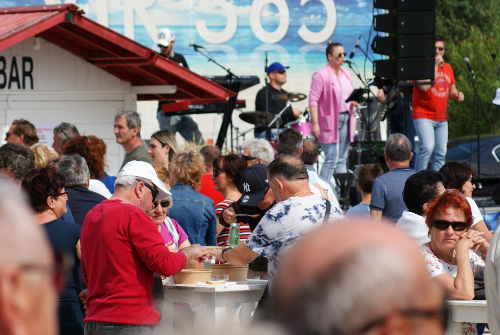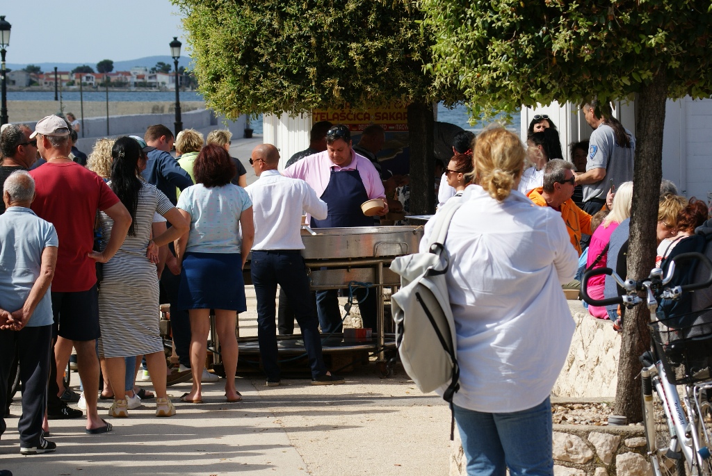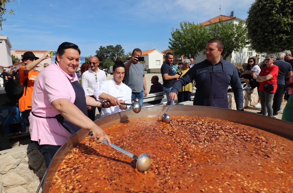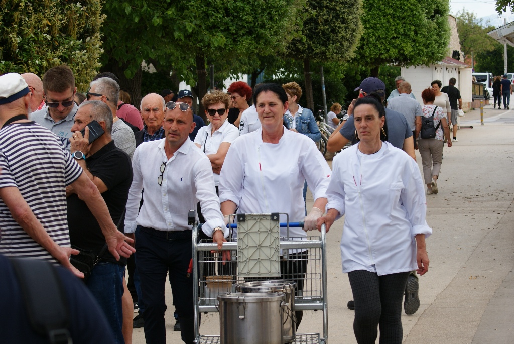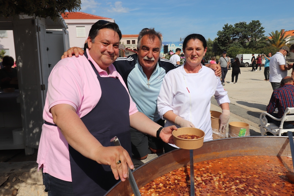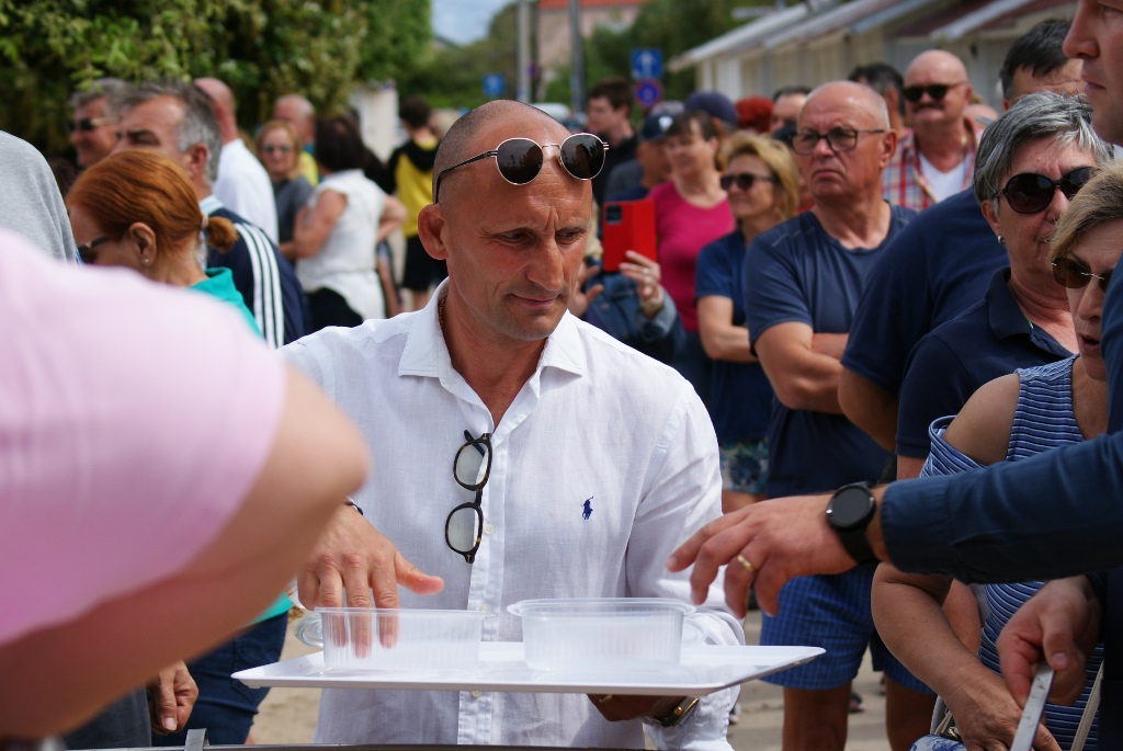 – Često dolazimo, a uvijek kada su biciklijade i blagdani. Uživamo na moru i u lijepom vremenu – govori France, nekadašnji slovenski jedriličarski olimpijac. Domaći ljudi iz cijele Hrvatske, potom Slovenci, Bosanci i Hercegovci, Mađari, Austrijanci, Česi, Poljaci, Slovaci i Nijemci, uglavnom vlasnici objekata na otoku, ali i oko 2.500 turista koliko ih na Viru trenutno boravi, ispunili su prostor rive i centralnog trga te okolne ugostiteljske objekte. Kuhari restorana Kotarina kuhali su i donosili porcije pašte-fažola u tri navrata, a dijelili su ih načelnik Općine Vir Marino Radović, direktor virske Turističke zajednice Srđan Liverić i direktor destinacijske menadžment kompanije Vir turizam Kristijan Bašić.