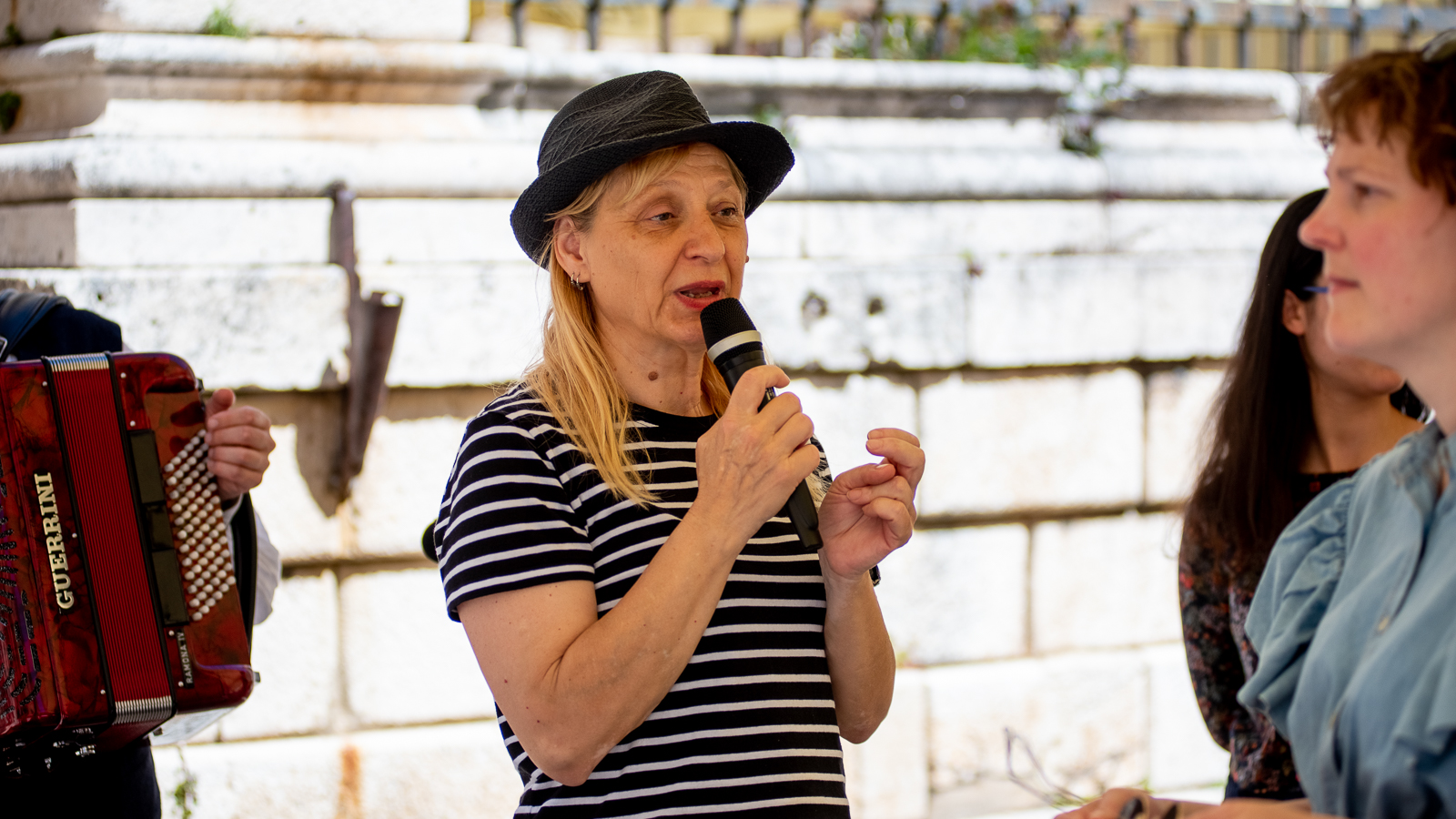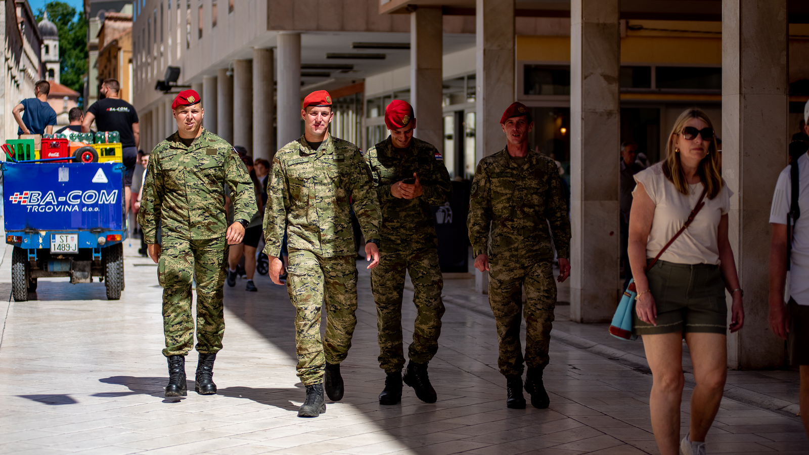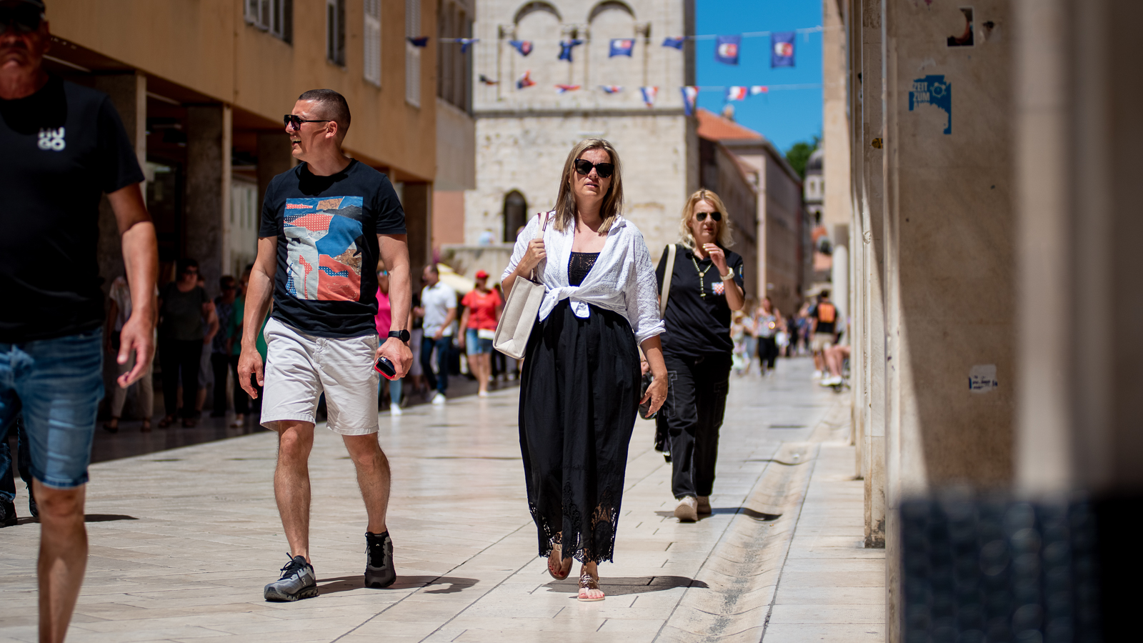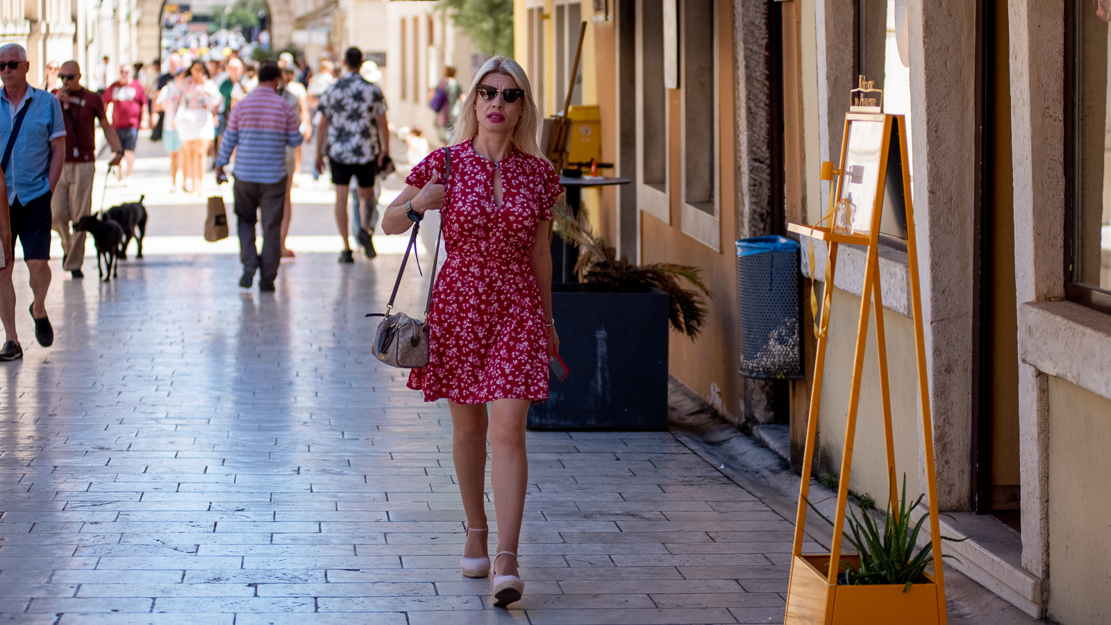 Pa prošeta, proćakula, susretne  poteštata, folklorašicu i folkloraša, hodače u odmoru, pokojeg vojaka, kolica, torbice, mater, ćaću, masu turista…
