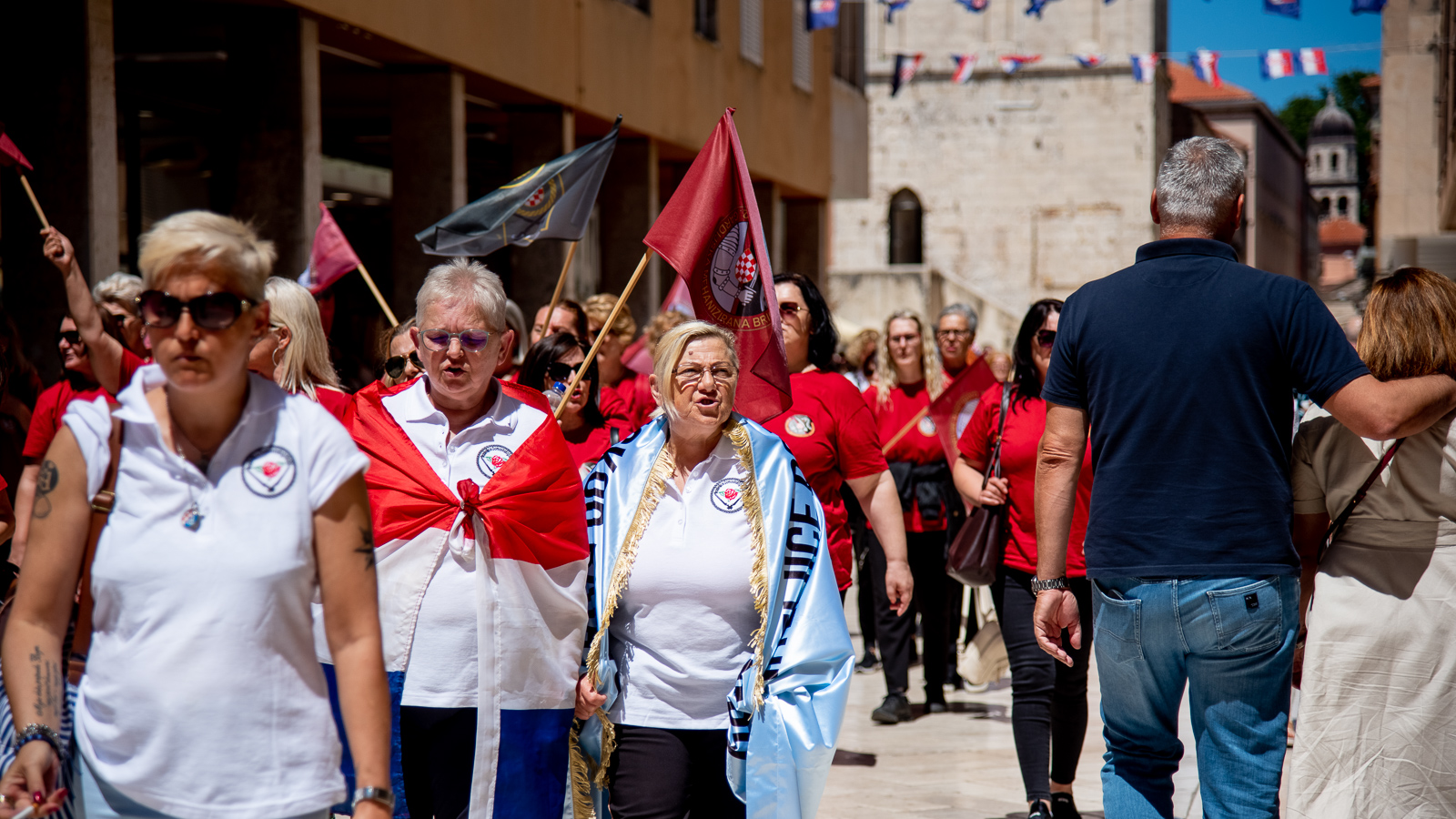 Prije mimohoda središtem grada, u kojemu su žene nosile 30 metara dugu hrvatsku zastavu, te mise u Katedrali sv. Stošije, s potpredsjednikom Vlade i ministrom hrvatskih branitelja Tomom Medvedom , županom Zadarske županije Božidarom Longinom i gradonačelnikom Grada Zadra, Brankom Dukićem, položile su cvijeće i zapalile svijeće pokraj spomenika poginulim braniteljima u Jazinama.