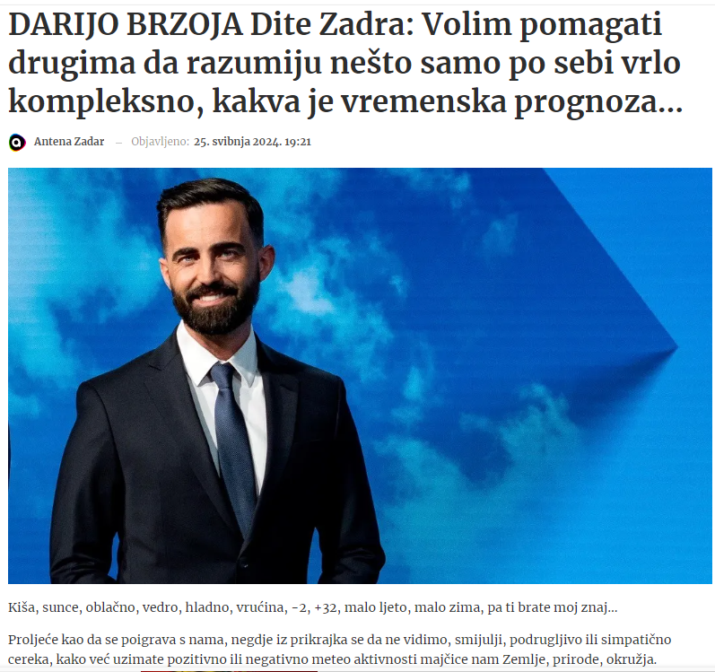 Dodajmo da više o vremenu i vremenskim prilkama, proljeću, ljetu pred nama možete pročitati u razgovoru Antene Zadar s našim Zadraninom Darijom Brzojem, meteorologom Nove Tv, klikom na LINK…