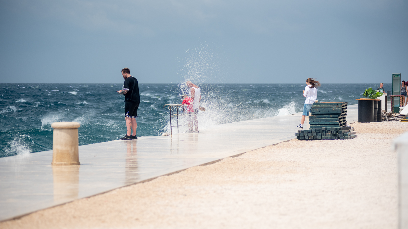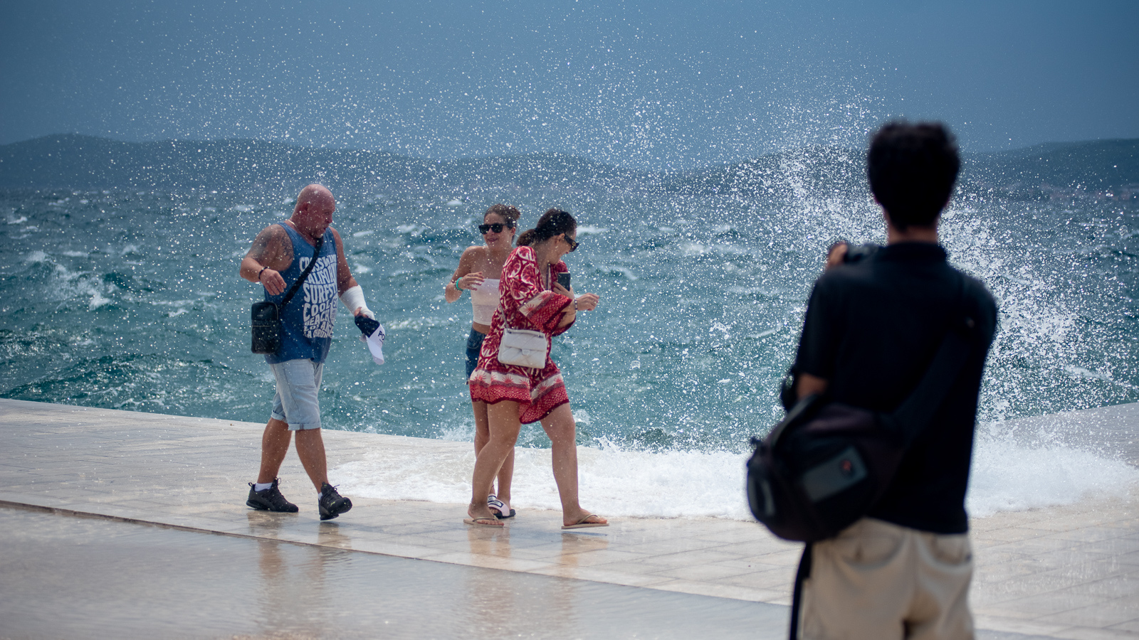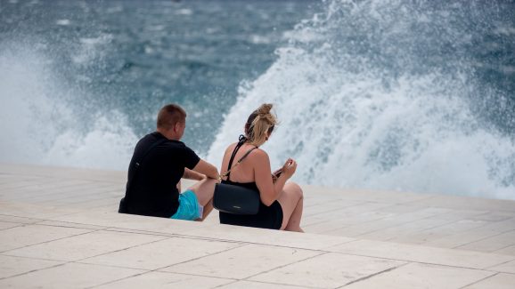 Naime, snažan i iznenadan nalet vjetra turistima je postao svojevrsna atrakcija – mnogi su snimali nemirno more, slikavali se s njim, ali i išli mu u susret, nakon čega su gotovo svi završili mokri od glave do pete. Moglo se čuti obilje smijeha, ali i vrištanja, a zasigurno možemo reći da im nije bilo dosadno.