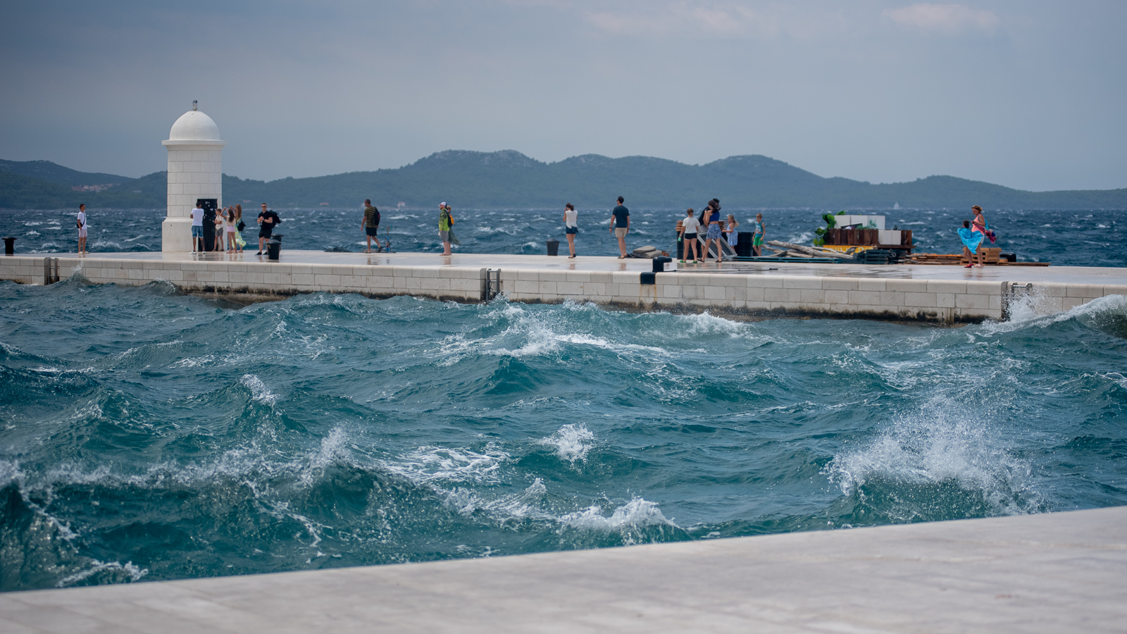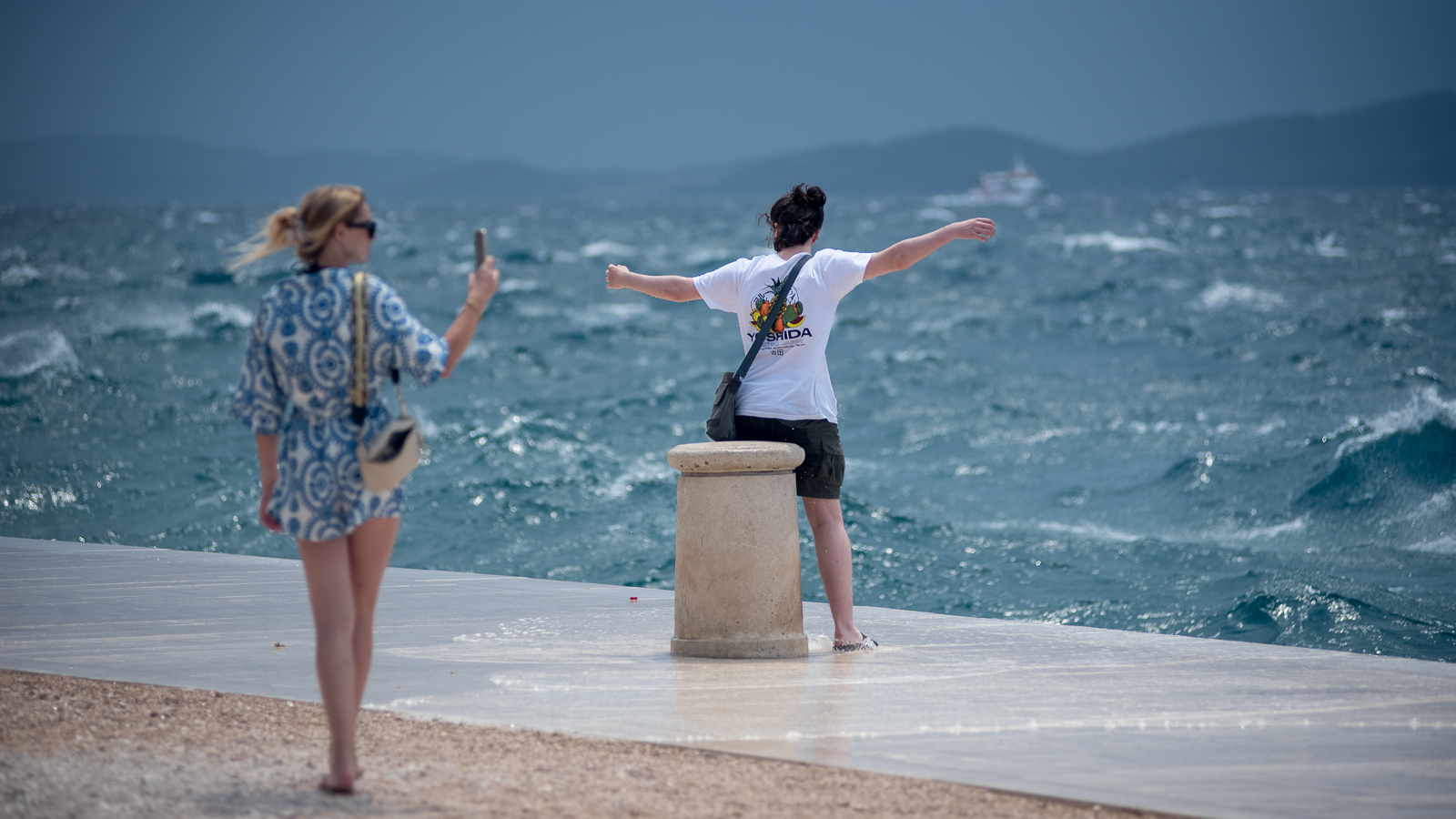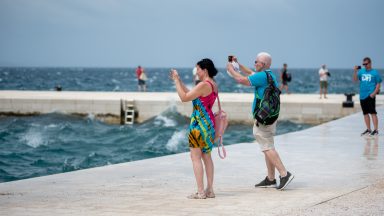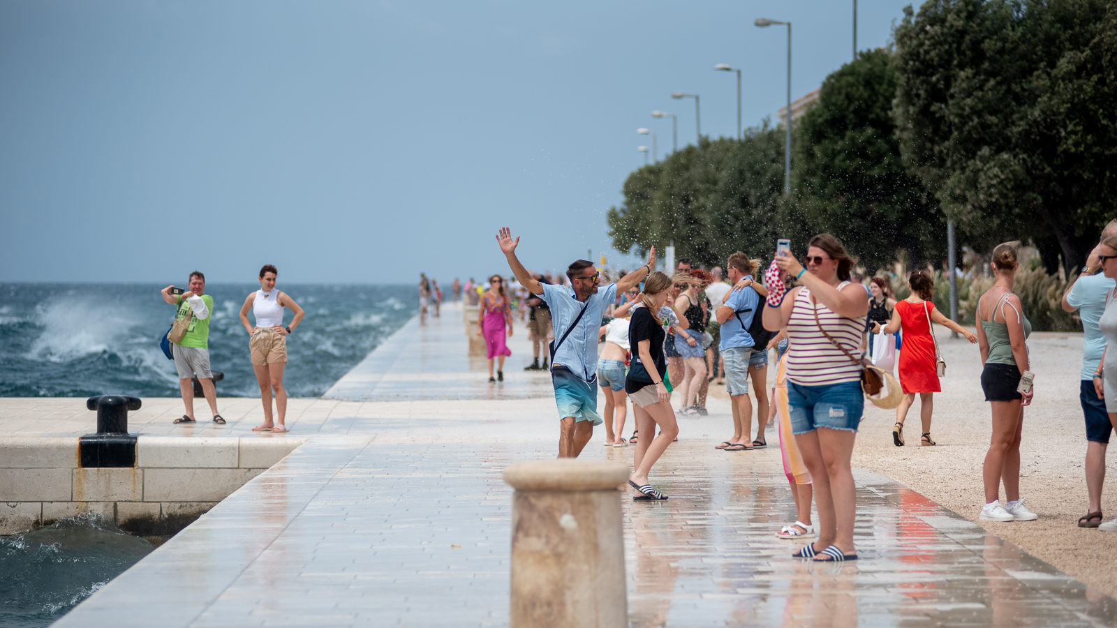 Naime, snažan i iznenadan nalet vjetra turistima je postao svojevrsna atrakcija – mnogi su snimali nemirno more, slikavali se s njim, ali i išli mu u susret, nakon čega su gotovo svi završili mokri od glave do pete. Moglo se čuti obilje smijeha, ali i vrištanja, a zasigurno možemo reći da im nije bilo dosadno.