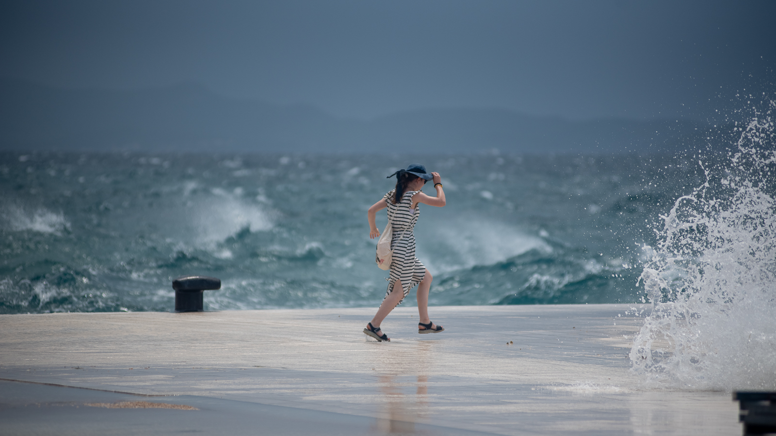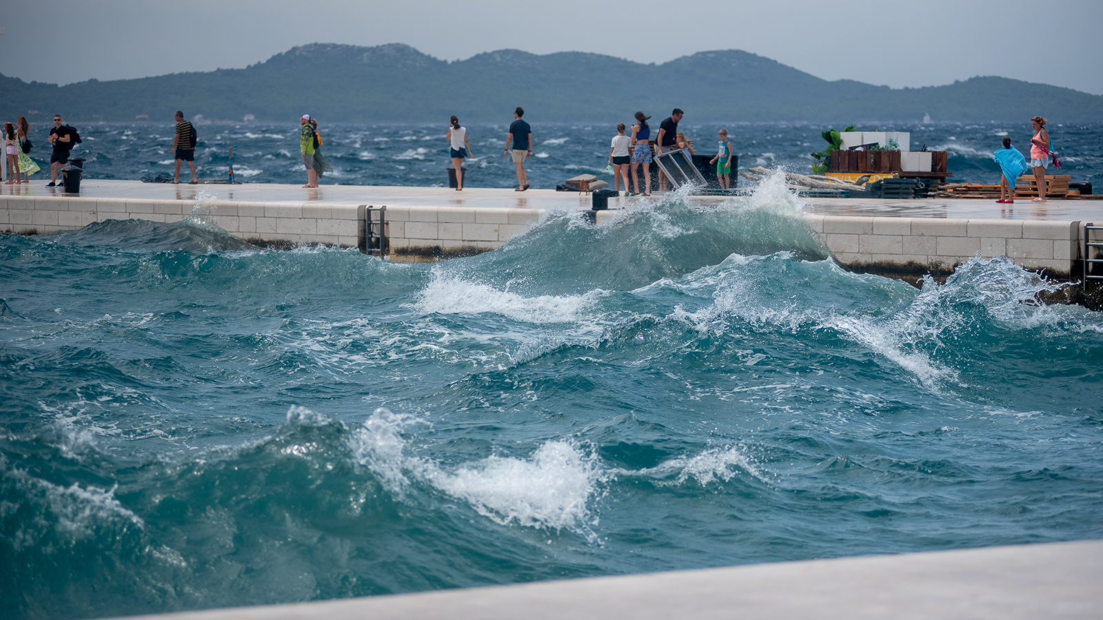 FOTOGALERIJA Iznenadan nalet vjetra na zadarskoj rivi razveselio brojne turiste